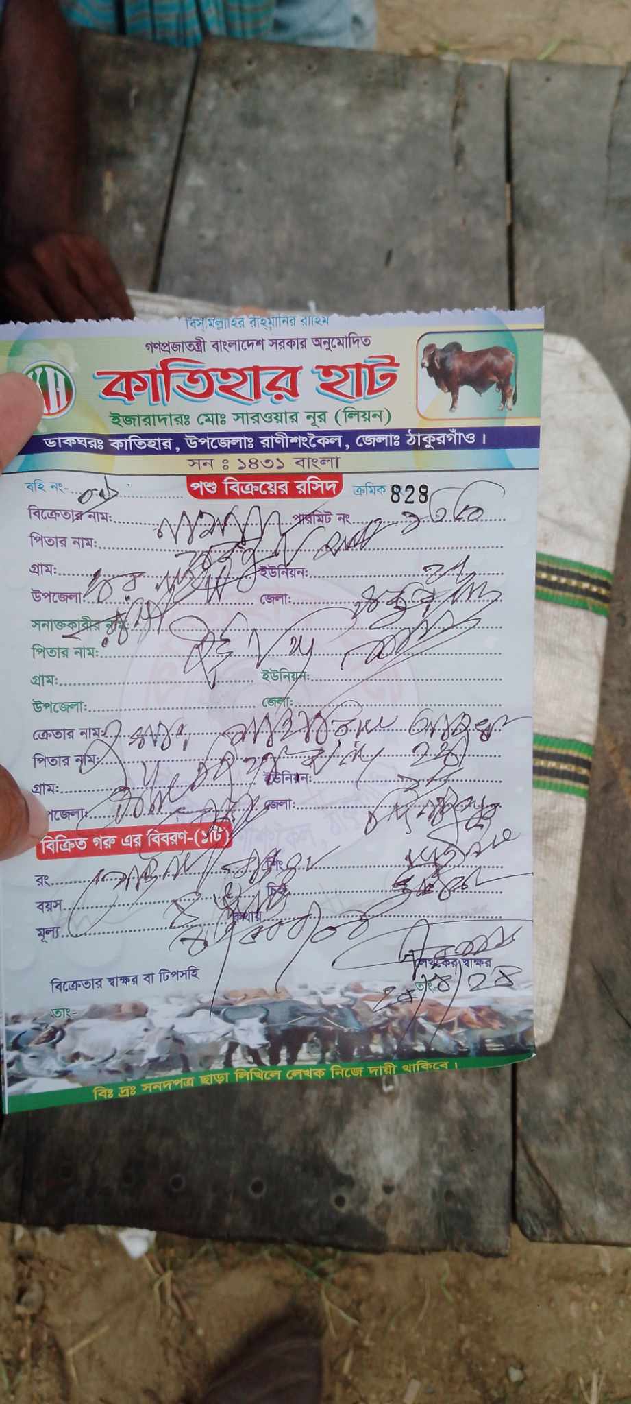 গরুর রশিদ লেখক চোপড়া গ্রামের আফাজ উদ্দিনকে অতিরিক্ত টোলের বিষয়ে বললে তিনি বলেন-- হাটের ইজারাদার লিয়নের নির্দেশে ৫০০ এবং ছাগল ১৭০ টাকা করে নিচ্ছি।