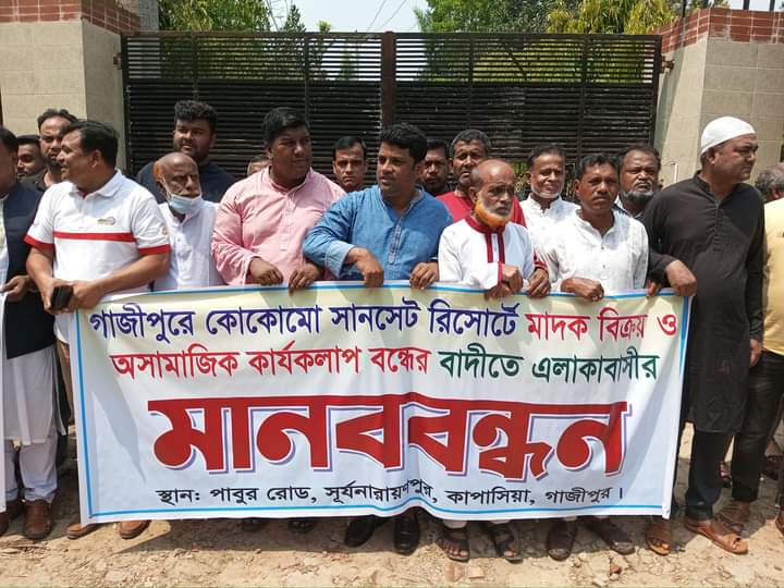 শ্রীপুর উপজেলা আওয়ামীলীগের সদস্য সাধারণ সম্পাদক মোঃ সামছুল হক সরদার, উপজেলা আওয়ামী লীগের প্রচার সম্পাদক জনাব মোঃ সুলতান উদ্দিন আহমেদ, জেলাযুবলীগের আহবায়ক সদস্য মো:শহিদুল্লাহ সরদার,বিভিন্ন ওয়ার্ড আওয়ামী লীগের সভাপতি /সাধারণ সম্পাদক, যুবলীগ নেতা ইউসুফ আলী সেক, রাজাবাড়ি ইউনিয়ন শাখা ছাত্র লীগ সভাপতি ফকির খোরশেদ আলম,সাধারণ সম্পাদক দীপু, রাজাবাড়ি যুব মহিলা লীগ সভাপতি শামছুন্নাহার।আরও সহযোগী সংগঠনের নেতৃবৃন্দ ও হাজার হাজার জনতা মানববন্ধনে অংশ গ্রহন করেন।মানববন্ধনে সভাপতি কামাল উদ্দিন ফরাজি বলেন কোকোমো রিসোর্টে অসামাজিক কার্যকলাপ হয়, নারী ও মাদকের ব্যবসা দাপটের সাথে চালিয়ে যাচ্ছে এতে করে এলাকায় যুবসমাজ নষ্ট হয়ে বিভিন্ন অপরাধের দিকে এগিয়ে যাচ্ছে। কোকোমো রিসোর্টের মালিক মো:শহিদুল ইসলামকে অসামাজিক কার্যকলাপ বন্ধের দাবী জানালে এলাকার মুরুব্বি রাজনৈতিক নেতৃবৃন্দ ও আওয়ামীলীগের নাম করে বিভিন্ন অশ্লীস ভাষায় গালি গালাজ করে বলে জানা যায় উপস্থিত নেতৃবৃন্দ।মানব বন্ধনে উপস্থিত ছিলেন বিভিন্ন ইলেকট্রনিক ও প্রিন্ট মিডিয়ার সাংবাদিকবৃন্দ।