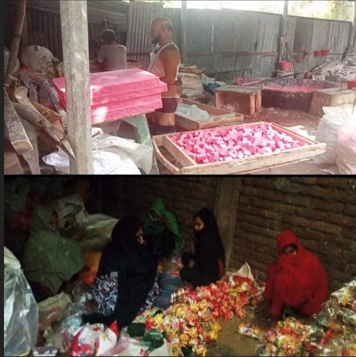 এসব কারখানার পরিবেশ অধিদপ্তর ও বিএসটিআইয়ের অনুমোদন না থাকলে ও দেদারছে তৈরী হচ্ছে নিম্ন মানের গোসলের, হাত ধোয়াঁর সাবানও ডিটারজেন্ট পাউডার,শিশু খাদ্য ঝাল মুড়ি চিপস ।