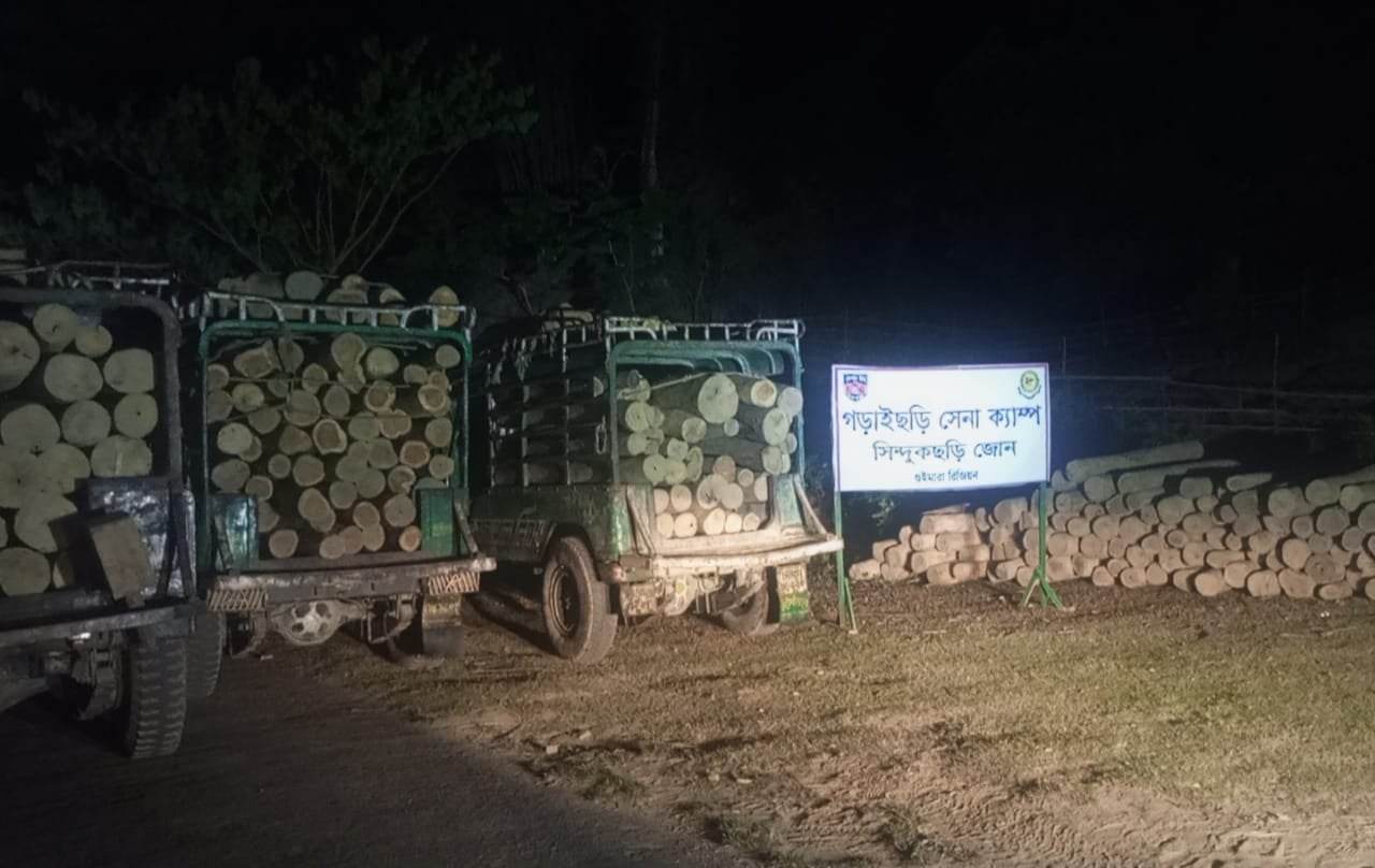 খাগড়াছড়ি জেলার গুইমারা উপজেলার সিন্দুকছড়ি ইউনিয়নের তিনদুকছড়ি এলাকা থেকে ৩১১ টুকরায় আনুমানিক ৪৫০ ঘনফুট অবৈধ কাঠ জব্দ করেছে বাংলাদেশ সেনাবাহিনীর সিন্দুকছড়ি জোনের আওতাধীন গড়াইছড়ি আর্মি ক্যাম্প।