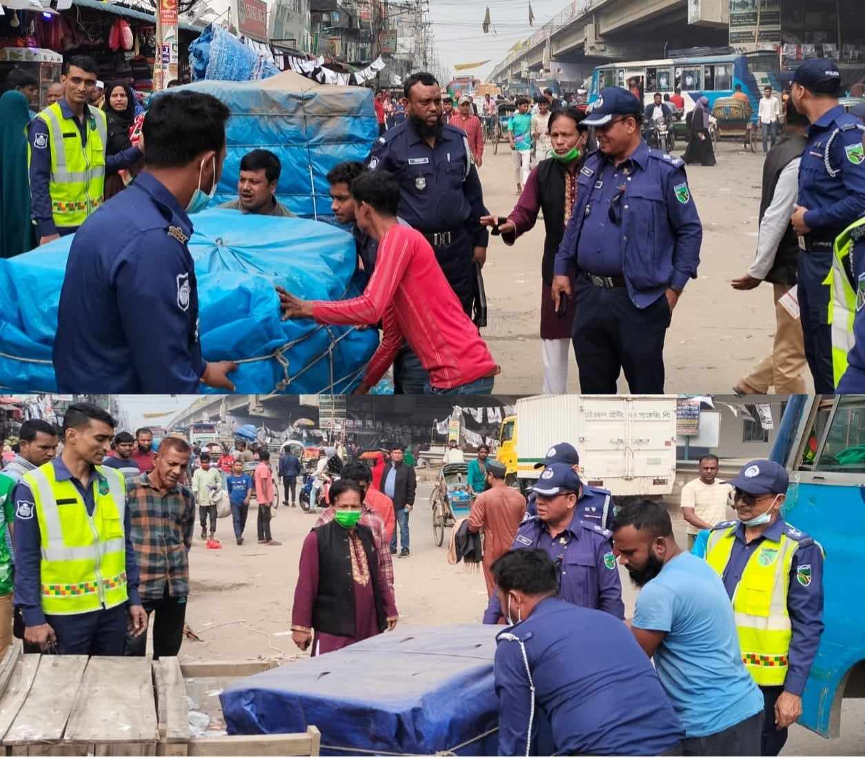 গাজীপুর জেলা শ্রীপুর উপজেলার ঢাকা মায়মনসিংহ মহাসড়কের মাওনা উড়াল সেতুর নিচে অবৈধ স্থাপনা ও ফুটপাত নিরসনে অভিযান পরিচালনা করছেন মাওনা ও হাইওয়ে থানার পুলিশ সদস্যরা।