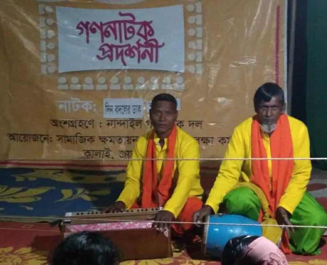 জয়পুরহাটের কালাই উপজেলার জিন্দারপুর ইউনিয়নের বাদাউচ্চ গ্রামে ২৭ ফেব্রুআরি সন্ধায় ব্র্যাক সামাজিক ক্ষমতায়ন ও আইনের সুরক্ষা কর্মসূচি এর সহায়তায় বাল্য বিয়ে প্রতিরোধে সচেতনতামূলক গণনাটক অনুষ্টিত হয়েছে। গণনাটক নাটকটি নান্দাইল দলের সৌজন্যে দেখানো হয়েছে। অনুষ্টানে অতিথির বক্তব্য রাখেন জিন্দারপুর ইউনিয়নের চেয়ারম্যান আলহাজ মোঃ জিয়াউর রহমান জিয়া। নাটকটি সমাজ পরিবর্তনের হাতিয়ার সমাজের নানা অসংগতি গুলো মানুষের চোখে আঙ্গুল দিয়ে দেখিয়ে দেয়। নাটক সভ্যতার শুরু থেকে থিয়েটার ও নাটক একটি শক্তিশালী মাধ্যম হিসেবে প্রতিষ্ঠিত ব্র্যাকের সামাজিক ক্ষমতায়ন ও আইনের সুরক্ষা কর্মসূচির আয়োজনে অনুষ্ঠিত হয়। নাটক দিন বদলের ডাক সমাজের নিপীড়িত মানুষের মধ্য ঘটে যাওয়া ঘটনাগুলো নিয়ে এই নাটকটি রচিত হয়েছে নাটকটির কর্মশালা পরিচালনা করেন মোহাম্মদ আতিকুর রহমান সিনিয়র অফিসার পপুলার থিয়েটার নাটকে বাল্য বিয়ের কুফল এর ফলে একটি পরিবার কিভাবে নিঃশেষ হয়ে যায় তা তুলে ধরা হয়েছে বাল্য বিয়ে সমাজের একটি মারাত্মক ব্যাধি বাল্য বিয়ে বন্ধে সরকার খুব কঠিন পদক্ষেপ গ্রহণ করেছে। ব্র্যাকের পাঁচটি গণনা নাটক দল রয়েছে জয়পুরহাট জেলায় গ্রামে গ্রামে তারা বাড়ির উঠানে গিয়ে সন্ধ্যার পরে নাটক প্রদর্শন করেন- গ্রামের সবাই এই নাটক দেখে সচেতন হন ব্র্যাকের সামাজিক ক্ষমতায়ন ও আইনে সুরক্ষা কর্মসূচির অফিসার সেল এই নাটকের নেতৃত্ব দেন ব্রাকের সামাজিক ক্ষমতায়ন ও সুরক্ষা কর্মসূচি গণনাটক বাল্য বিয়ে বন্ধে সরকারের সাথে একযোগে কাজ করছে।