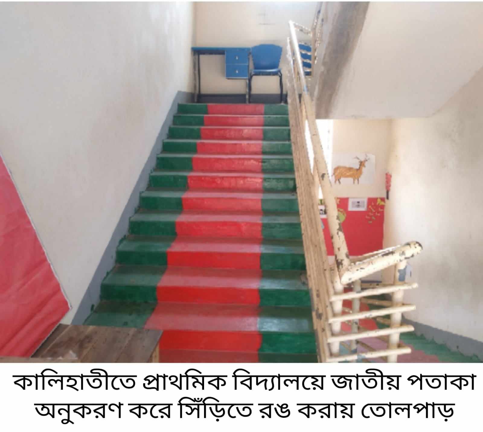 টাঙ্গাইলের কালিহাতীতে জাতীয় পতাকার আদলে অনুকরণ করে উপজেলা বল্লা ইউনিয়নের সিংগাইর সরকারি প্রাথমিক বিদ্যালয়ের সিঁড়ি রঙ করার ঘটনায় এলাকায় তোলপাড় শুরু হয়েছে। মাঝে লাল ও দুই পাশে সবুজ রঙে রঙিন করা হয় সিঁড়িটি। স্থানীয় লোকজনের নজরে এলে বিষয়টি নিয়ে এলাকার সুধীজনের মধ্যে ক্ষোভের সৃষ্টি হয়। তারা প্রধান শিক্ষিকা ও দোষিদের বিরুদ্ধে বিচার দাবি করেন।