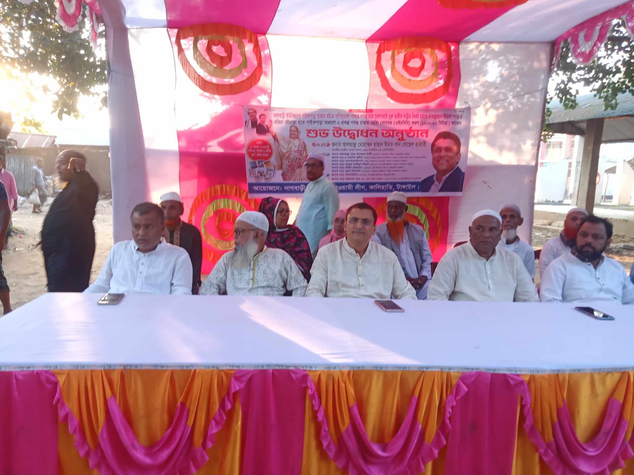 কালিহাতী প্রতিনিধি :টাংগাইলের কালিহাতী উপজেলায় নাগ বাড়ী ইউনিয়নের মরিচা গ্রামে রাস্তা উদ্ভোধন করা হয়।নাগ বাড়ী ইউনিয়নের পাইকপাড়া বাজার হইতে সাপিয়াচালা বাজার পর্যন্ত ভায়া চালাসরাই নূরু হাজীর বাড়ির নিকট হইতে কাকড়াজান সীমানা পর্যন্ত ও মরিচা চৌরাস্তা হতে পাইকপাড়া আশ্রয়ন-২ প্রকল্প পর্যন্ত রাস্তায় হেরিং বোনবন্ড(১২০০.০০ মিটার) কাজের উদ্ভোধন করা হয়। শনিবার ১১ নভেম্বর বিকাল চারটায় মরিচা বাজারে এই অনুষ্ঠান টি অনুষ্ঠিত হয়। নাগবাডী ইউনিয়ন আওয়ামীলীগের সভাপতি মোঃ আলাউদ্দীন এর সভাপতিত্বে, প্রধান অতিথি হিসেবে উপস্থিত ছিলেন আলহাজ্ব হাছান ইমাম খান সোহেল হাজারী এমপি। বিশেষ অতিথি হিসেবে উপস্থিত ছিলেন কালিহাতী উপজেলা চেয়ারম্যান আনছার আলী বি কম, দশকিয়া ইউনিয়নের চেয়ারম্যান এম,এ মালেক ভূইয়া, কালিহাতী উপজেলা ভাইস-চেয়ারম আক্তারুজ্জামান, নাগ বাড়ী ইউপি চেয়ারম্যান আব্দুল কাইয়ুম বিপ্লব, বল্লা ইউপি চেয়ারম্যান ফরিদ আহমেদ, কোকডহরা ইউপি চেয়ারম্যান নূরুল ইসলাম, কোকডাজান ইউপি চেয়ারম্যান দুলাল মাষ্টার, উপজেলা আওয়ামী লীগের নেতা শরীফ আহমেদ রাজু। উক্ত অনুষ্ঠানটি সন্চালন করেন টাংগাইল জেলা পরিষদের সদস্য মোঃ আয়নাল হক আরো উপস্থিত ছিলেন স্হানীয় আওয়ামী লীগ, ছাএলীগ,যুবলীগ,এলাকার গন্যমান্য ব্যক্তিবৃন্দ।