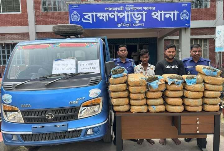 ব্রাহ্মণপাড়া থানা কর্তৃক ৬৪ কেজি গাঁজা ও মাদক পরিবহনে ব্যবহৃত ০১টি পিকআপ গাড়িসহ ০২ জন মাদক ব্যবসায়ী গ্রেফতার।