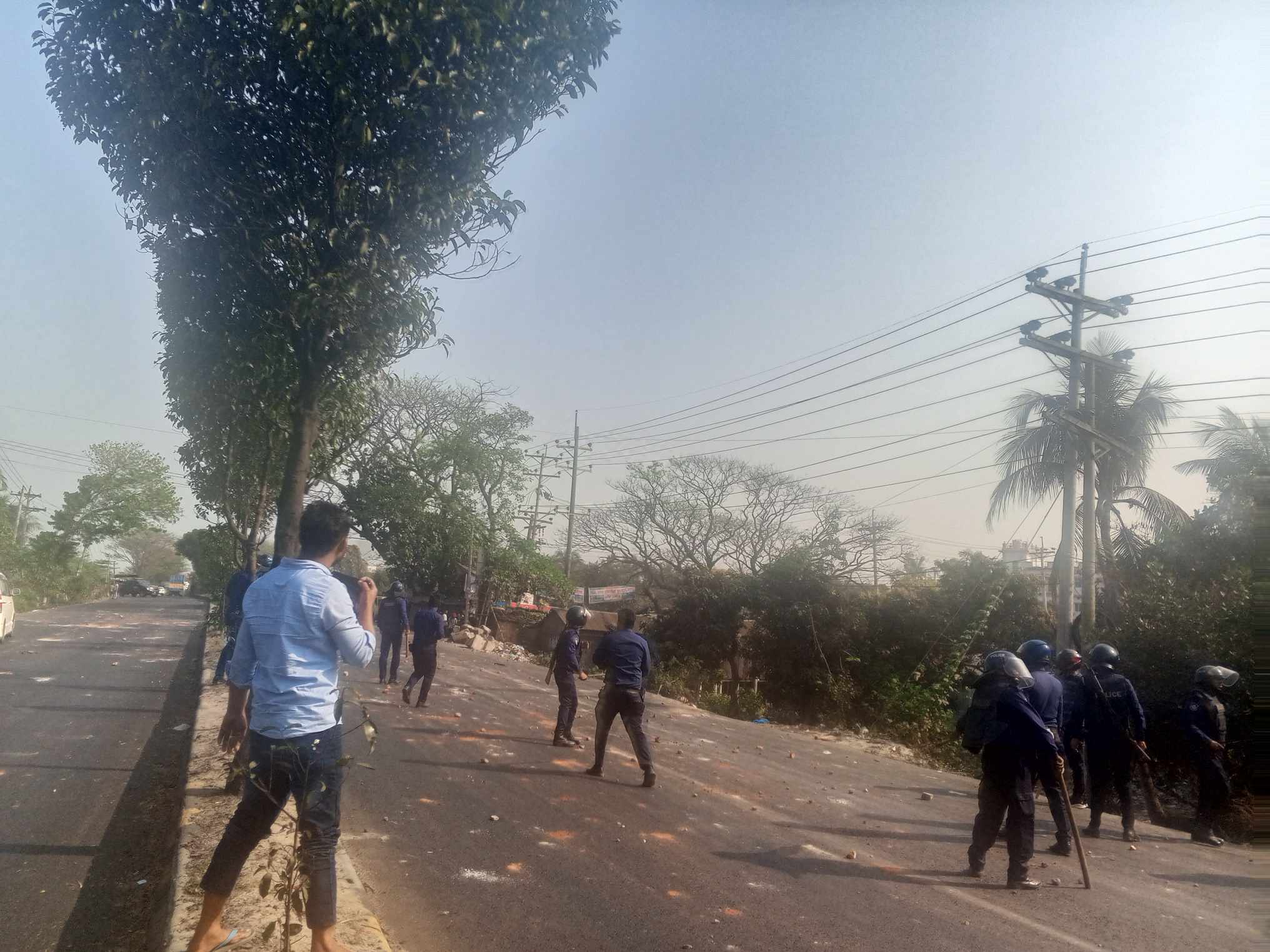 আন্দোলনকারীদের শান্ত করতে ঘটনাস্থলে ছুটে আসেন গজারিয়া উপজেলা নির্বাহী কর্মকর্তা কোহিনুর আক্তার, মুন্সীগঞ্জ সদর-গজারিয়া সার্কেলের অতিরিক্ত পুলিশ সুপার থান্দার খায়রুল হাসান, মুন্সীগঞ্জ জেলা প্রশাসনে নির্বাহী ম্যাজিস্ট্রেট আব্দুল আল ফারুক-সহ প্রশাসনের কর্মকর্তারা। কিন্তু উত্তেজিত জনতা তাদের কথা না শুনে মহাসড়কে অবস্থান নিলে পুলিশের সাথে সংঘর্ষ বাধে,এ সময় পরিস্থিতি স্বাভাবিক ক রতে পুলিশ গুলি, টিয়ারশেল,রাবার বুলেট নিক্ষেপ করে।