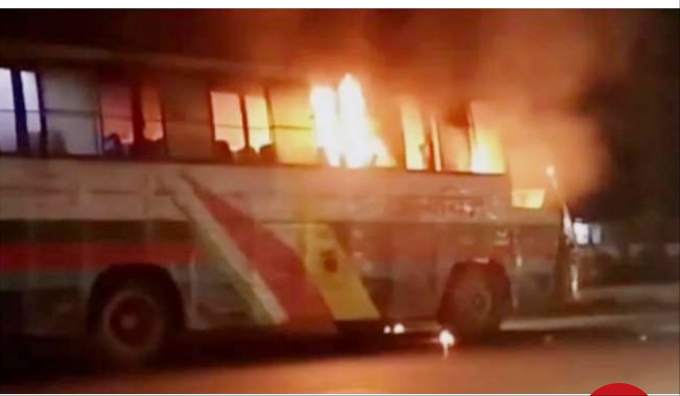 গাজীপুরের চলন্ত বাসে পেট্রোল ঢেলে আগুন।