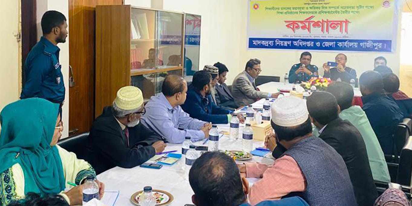 গাজীপুরে মাদকের ভয়াবহতা ও এর ক্ষতিকর দিক সম্পর্কে দিনব্যাপী কর্মশালা অনুষ্ঠিত হয়েছে। বুধবার গাজীপুরের বিজ্ঞ জেলা ম্যাজিস্ট্রেট ও জেলা প্রশাসক মোঃ আবুল ফাতে সফিকুল ইসলামের অনুমতিক্রমে মাদকদ্রব্য নিয়ন্ত্রণ অধিদপ্তর গাজীপুর জেলা কার্যালয়ে শিক্ষার্থীদের মাদকের ভয়াবহতা এবং ক্ষতিকর দিক সম্পর্কে সচেতন করার লক্ষ্যে শিক্ষা প্রতিষ্ঠানের শিক্ষকদেরকে প্রশিক্ষক/মেন্টর তৈরীর লক্ষ্যে এ অনুষ্ঠানের আয়োজন করা হয়। কর্মশালায় মাদকদ্রব্য নিয়ন্ত্রণ অধিদপ্তর গাজীপুর জেলা কার্যালয়ের উপ পরিচালক মোঃ মেহেদী হাসান’র সভাপতিত্বে উপস্থিত ছিলেন ইসলামিক ফাউন্ডেশন এর গাজীপুরের উপপরিচালক মোঃ মনজুরুল আলম মজুমদার, গাজীপুর যুব উন্নয়ন অধিদপ্তরের উপপরিচালক মোঃ হারুন অর রশীদ,গাজীপুর জেলা সমাজসেবা অধিদপ্তরের উপপরিচালক এস. এম. আনোয়ারুল করিম।