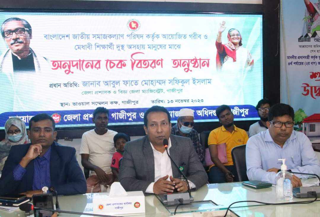 সোমবার (১৩ নভেম্বর) দুপুরে গাজীপুর সমাজসেবা অধিদপ্তরের আয়োজনে জেলা প্রশাসক কার্যালয়ের ভাওয়াল সম্মেলন কক্ষে এই অনুষ্ঠানের আয়োজন করা হয়। অতিরিক্ত জেলা প্রশাসক (সার্বিক) মোঃ ওয়াহিদ হোসেনের সভাপতিত্বে, গরীব ও মেধাবী শিক্ষার্থী, দুস্থ অসহায় মানুষের মাঝে এসব চেক বিতরণ করেন গাজীপুরের জেলা প্রশাসক আবুল ফাতে মোহাম্মদ সফিকুল ইসলাম।