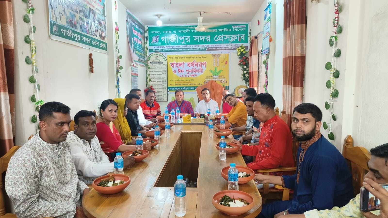 রোববার(১৪ এপ্রিল) গাজীপুর সদর প্রেসক্লাব কার্যালয়ে উৎসব মূখর পরিবেশে প্রেসক্লাবের আয়োজনে উৎযাপিত হয় দিনটি। গাজীপুর সদর প্রেসক্লাবের সভাপতি, এশিয়ান টেলিভিশনের স্টাফ রিপোর্টার, জনতার নিঃশ্বাস পত্রিকার সম্পাদক ও প্রকাশক মো. আবু বকর সিদ্দিকের সভাপতিত্বে ও সাধারণ সম্পাদক আলমগীরের সঞ্চালনায় অতিথি হিসেবে উপস্থিত ছিলেন জয়দেবপুর থানার ওসি ইবরাহিম খলিল,বিশিষ্ট শিক্ষাবিদ ও সমাজ সেবক জালাল উদ্দিন মাস্টার,সমাজ সেবক হাফেজ ইব্রাহিম, বাসন মেট্টো থানা জাতীয় শ্রমিক লীগের সভাপতি ও কাঁচাবাজার আড়ৎদার মালিক গ্রুপের সভাপতি আব্দুস সোবাহান,বাসন থানা আওয়ামী মৎস্যজীবী লীগের সভাপতি সুলতান মন্ডল,বাসন থানা জাতীয় শ্রমিকলীগের সহ-সভাপতি আব্দুল কাদির।