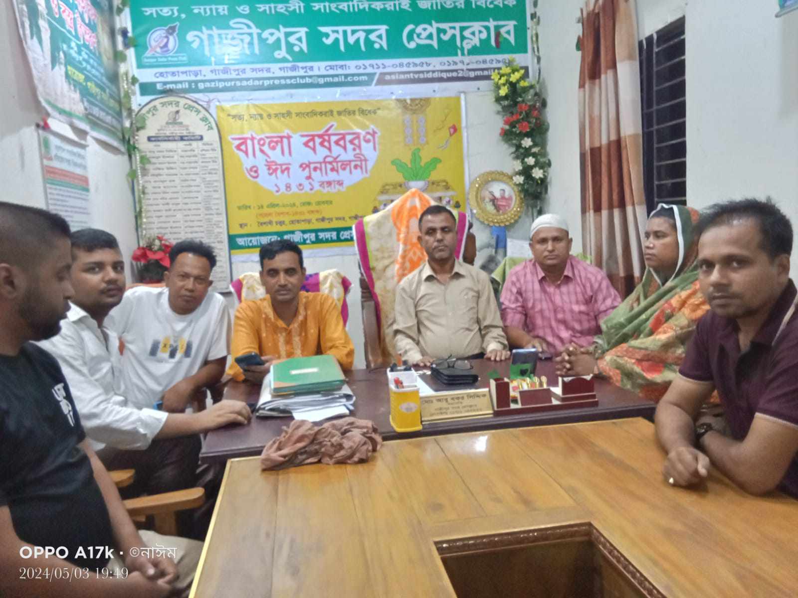 গাজীপুর সদর প্রেসক্লাবের সভাপতি ও এশিয়ান টিভি স্টাফ রিপোর্টার মোঃ আবু বক্কর সিদ্দিক সভাপতিত্বে ও সাধারণ সম্পাদক আলমগীর এর সঞ্চালনায় আলোচনা সভায় বক্তব্য রাখেন- মোঃ আবু বক্কর সিদ্দিক