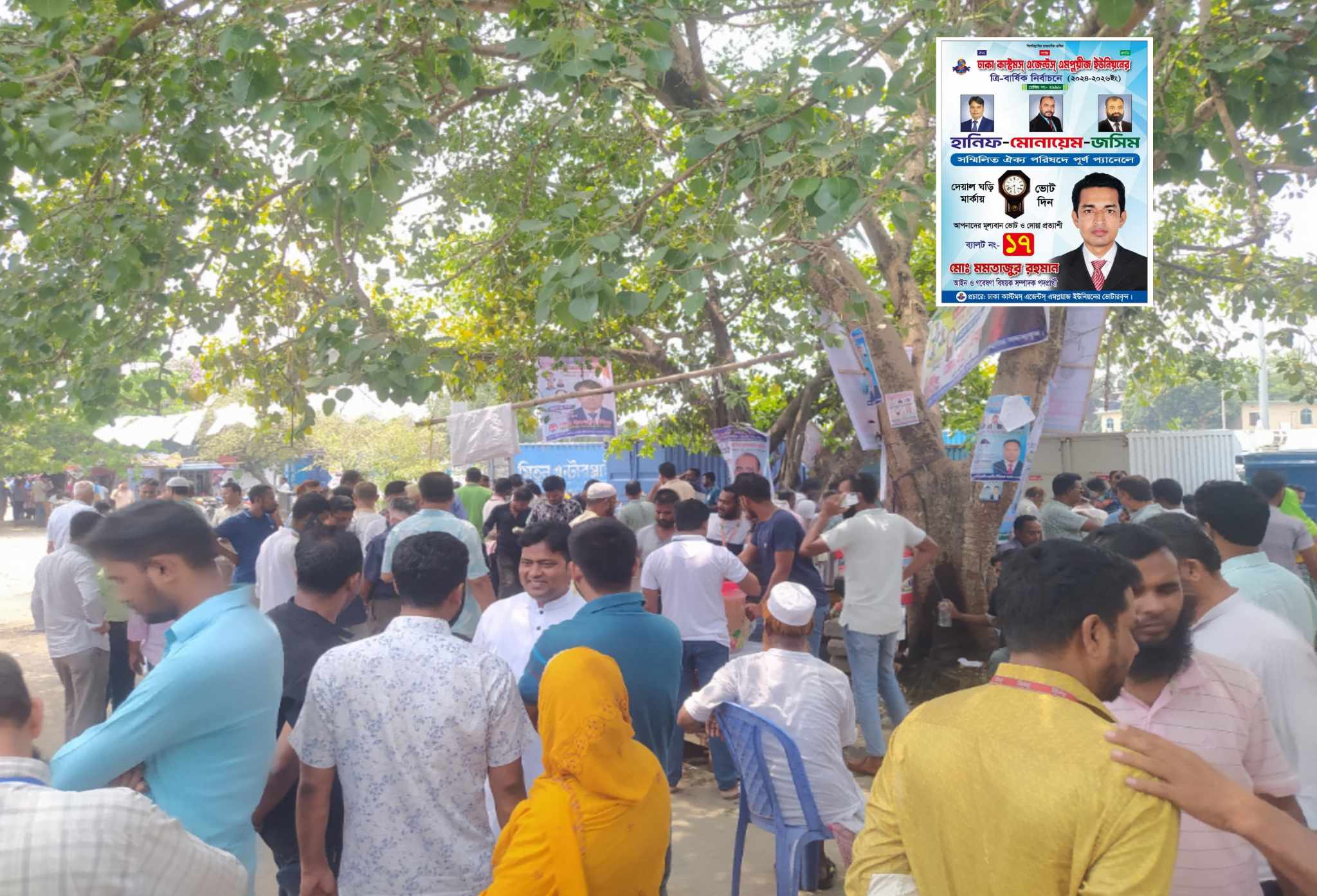 জমে উঠেছে ঢাকা কাস্টম এজেন্ট এমপ্লয়ীজ ইউনিয়ন ত্রি বার্ষিক নির্বাচন । চলতি মাসের শেষের দিকে অর্থাৎ ৩০ এপ্রিল অনুষ্ঠিত হতে যাচ্ছে ঢাকা কাস্টম এজেন্ট এমপ্লয়ীজ ইউনিয়ন ত্রি বার্ষিক নির্বাচন আর এই নির্বাচনকে ঘিরে বিমানবন্দর এলাকা ভোটারদের মাঝে খুশির আমেজ বইছে । এই নির্বাচনে দুইটি প্যানেল অংশগ্রহণ করেছে আর কোন প্যানেল দেওয়ার সম্ভাবনা নেই বলে চলে । আসন্ন নির্বাচনে দুইটি প্যানেলে নির্বাচনের অংশ নেয়ার বিষয়টি নিশ্চিত হয়ে গেছে । আর দুইটি প্যানেলের মধ্যে একটি হলো হানিফ, মোনায়েম, জসিম পরিষদ প্রতীক দেয়াল ঘড়ি ও রাজ্জাক ,শাহাদাত, রাকিব পরিষদ প্রতীক ছাতা।