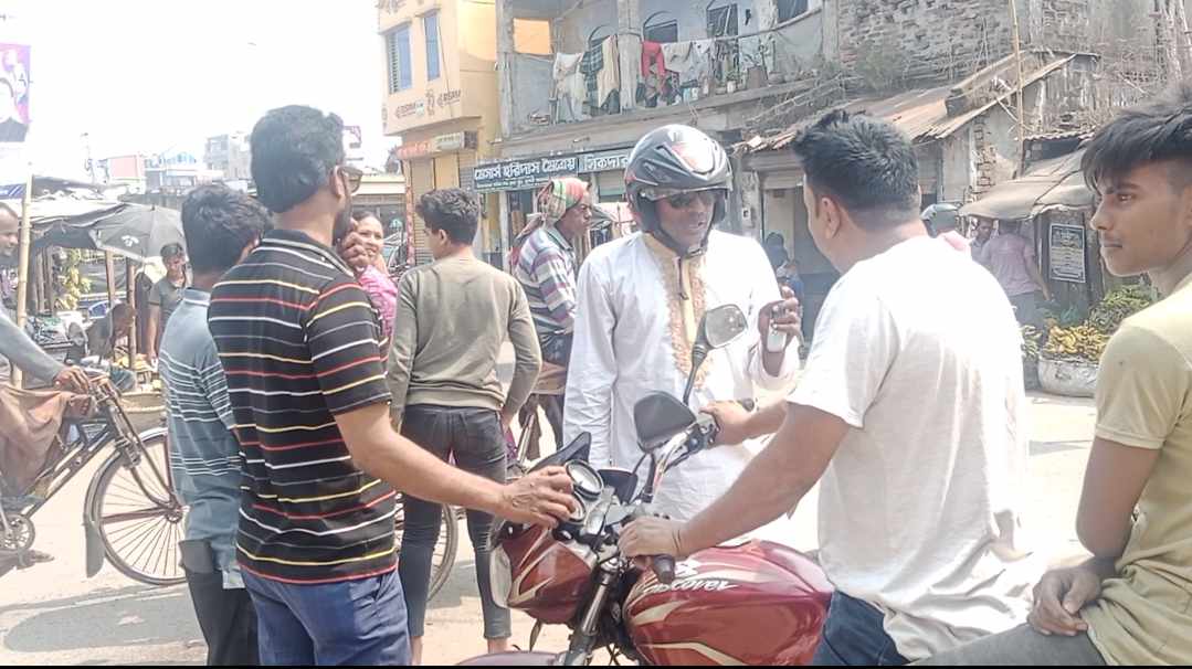 রাস্তার উপরে মোটরসাইকেলে রাখা টিপু সুলতান ওই টিমের সাথে অশোভন আচরন
