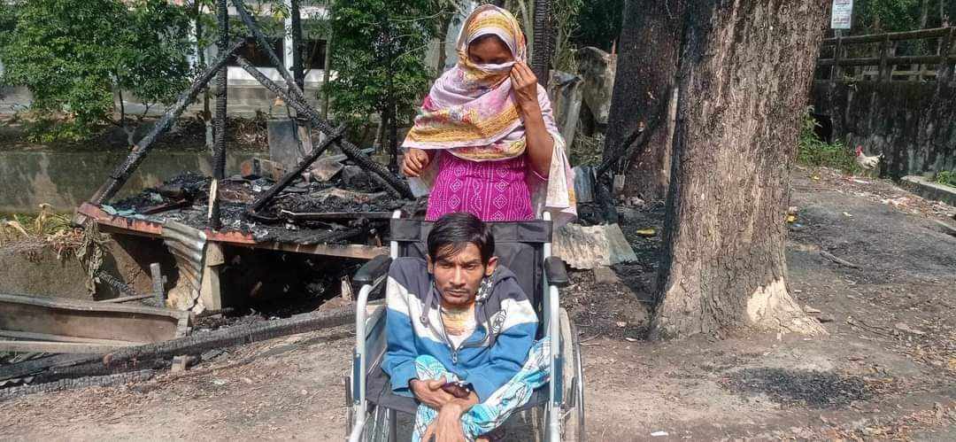 স্থানীরা জানান সৈয়দ কাঞ্চন ছোট বেলায় টাইফয়েড জ্বরে আক্রান্ত হয়ে তার পা দুটি পারালাইসিস হয়ে যায়।এতে করে একা চলাফেরা করতে পারেনা।পরিবারের সাহায্য নিয়ে চলাচল করতে হয়।প্রতিবন্ধী হওয়া সত্বেও তিনি ভিক্ষাবৃত্তি না করে ধার-দেনা করে দোকান দিয়ে চালান সংসার।দোকান পুড়ে ছাই হয়ে অসহায় পরিবারটি এখন নিঃস্ব হয়ে পথে বসতে হবে।