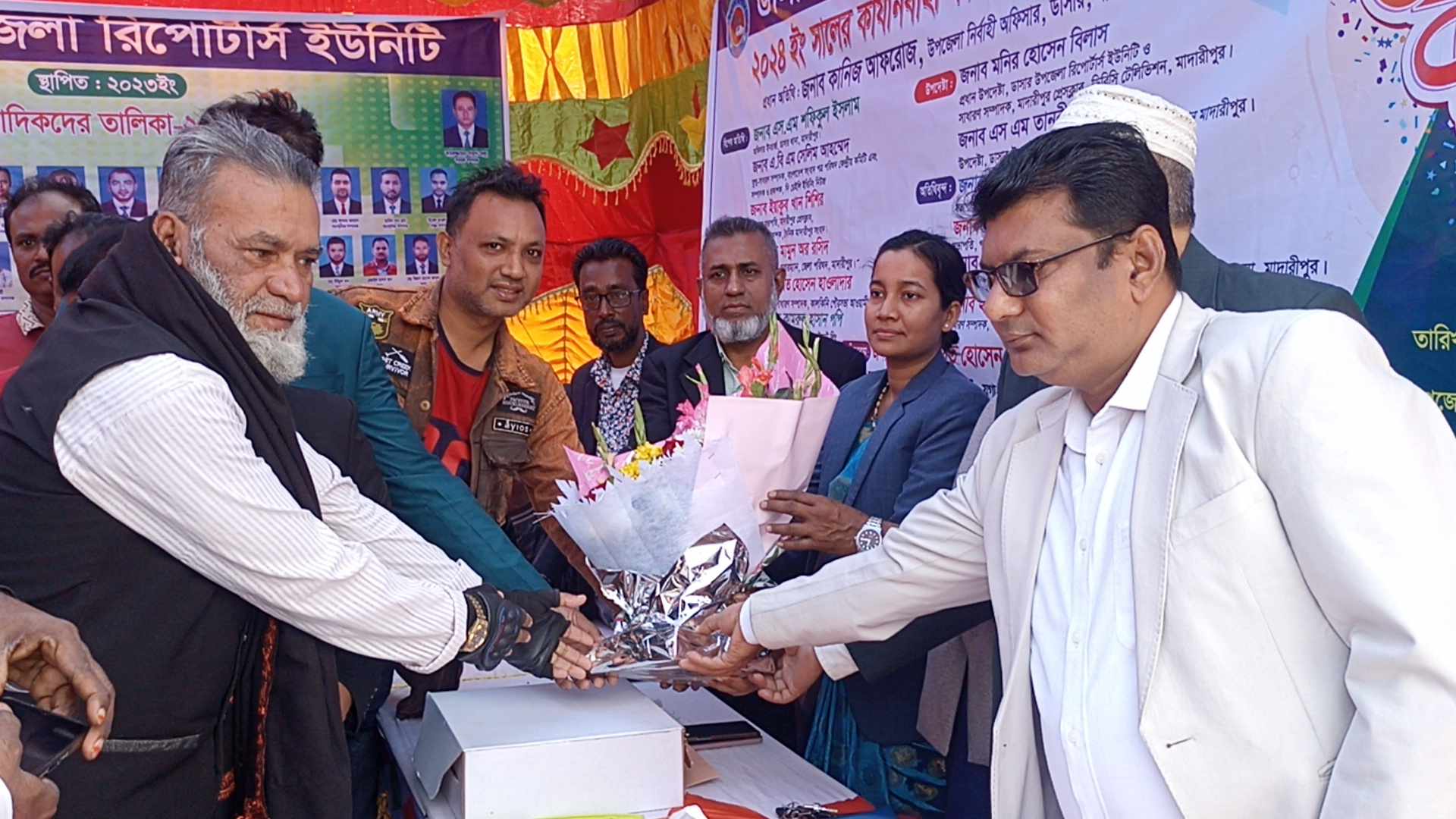 এ সময় অনুষ্ঠানে প্রধান অতিথি হিসেবে উপস্থিত ছিলেন ডাসার উপজেলা নির্বাহী অফিসার কানিজ আফরোজ বিশেষ অতিথি দি ডেইলি ইভিনিং নিউজের সম্পাদক ও প্রকাশক এ.বি এম সেলিম আহম্মেদ,মাদারীপুর প্রেসক্লাবের ভারপ্রাপ্ত সভাপতি ইয়াকুব খান শিশির,ডাসার উপজেলা রিপোর্টার্স ইউনিটির প্রধান উপদেষ্টা ও মাদারীপুর প্রেসক্লাবের সাধারণ সম্পাদক মনির হোসেন বিলাশ,সি এল টি বিডি প্রাইভেট লিমিটেডের ব্যবস্থাপনা পরিচালক সৈয়দ কামরুল হাসান,প্রমুখ।