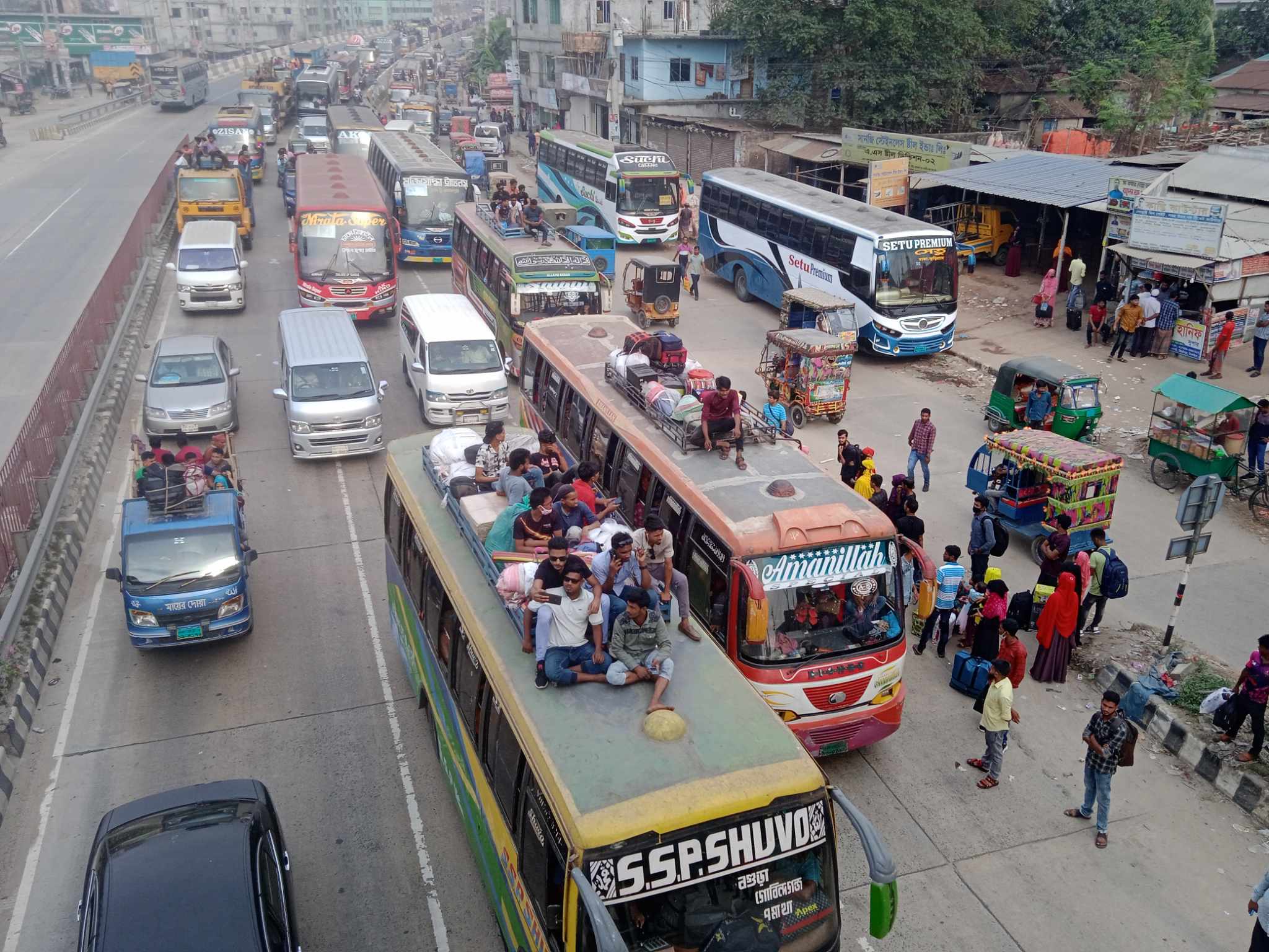 ঝিনাইদহগামী পোশাকশ্রমিক রিনি খাতুন বলেন যে, দুপুর তিনটা থেকে বাসের জন্য দাঁড়িয়ে আছি, এখন সারে চারটা বাজলো। ঝিনাইদহ যাবো, কিন্তু বাস পাচ্ছি না।