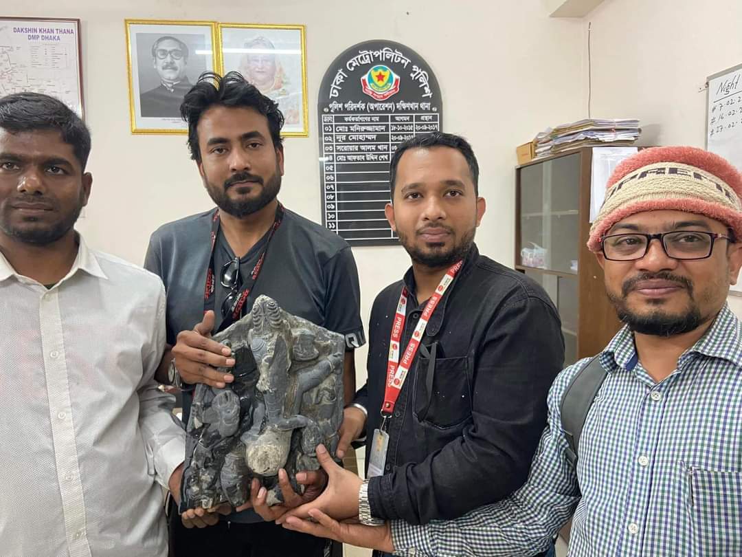 রাজধানী দক্ষিণ খান এলাকার মধ্য গাওয়াইর থেকে গতকাল রাত ১২টায় সাংবাদিকদের সহায়তায় ২০ কেজি ওজনের কষ্টিপাথরের খন্ডিত মূর্তি উদ্ধার করা হয়।