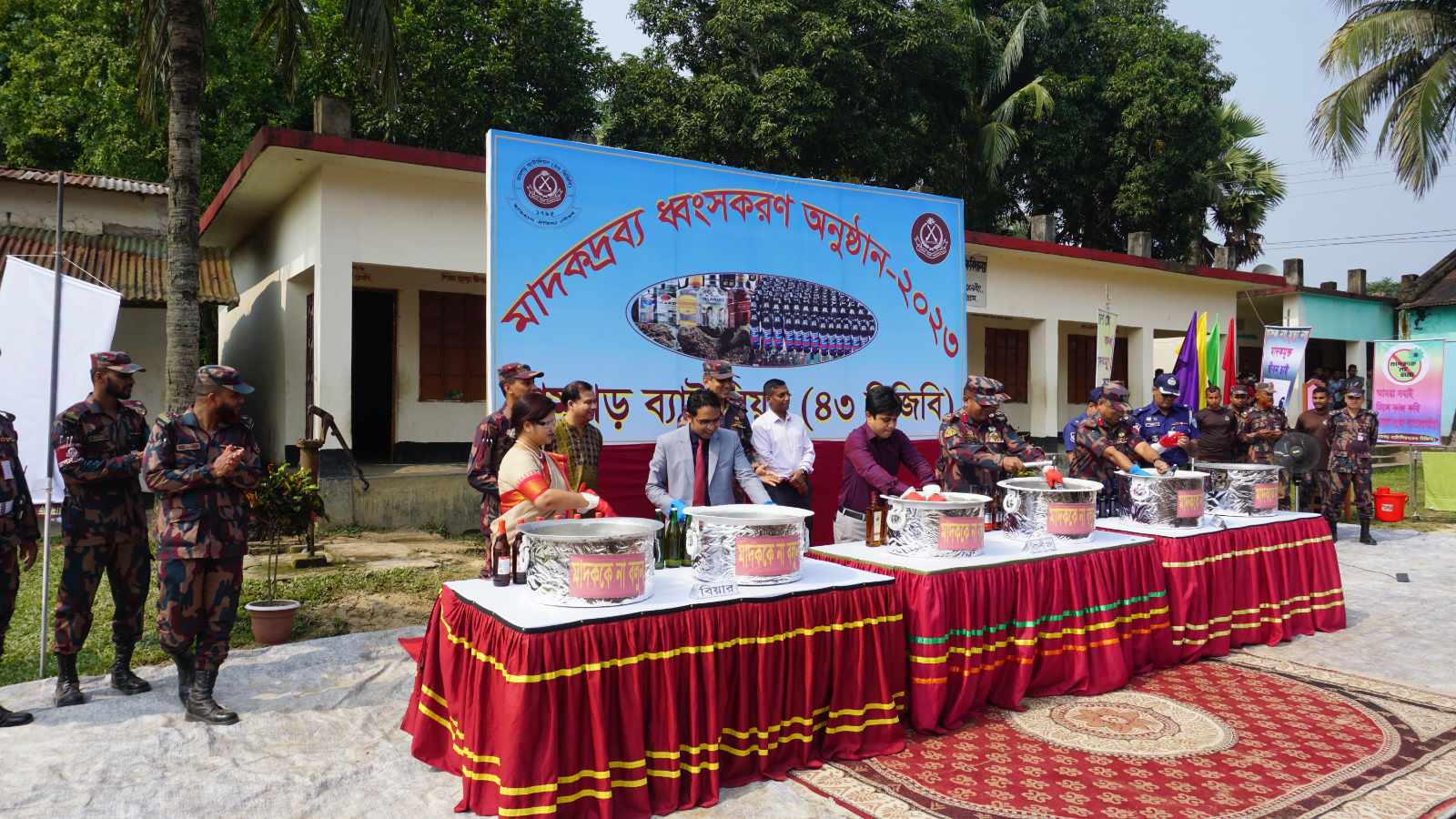 ধ্বংসকৃত মাদকদ্রব্যের মধ্যে ভারতীয় বিভিন্ন প্রকার ৭২৫১ বোতল ভারতীয় বিভিন্ন প্রকার মদ, ২৬৯ বোতল ভারতীয় বিয়ার ক্যান, ১৯২৭ বোতল ভারতীয় ফেন্সিডিল, ৯৮৭৮ পিস ভারতীয় ইয়াবা ট্যাবলেট, ৪০৯.৩৬ কেজি ভারতীয় গাঁজা, ২০৮.২৫ লিটার ভারতীয় চোলাই মদ, ৪০ পিস টার্গেট ট্যাবলেট, ৪০ পিস সেনেগ্রা ট্যাবলেট ও ৫০০ পিস নিমসোলাইড ট্যাবলেট রয়েছে।