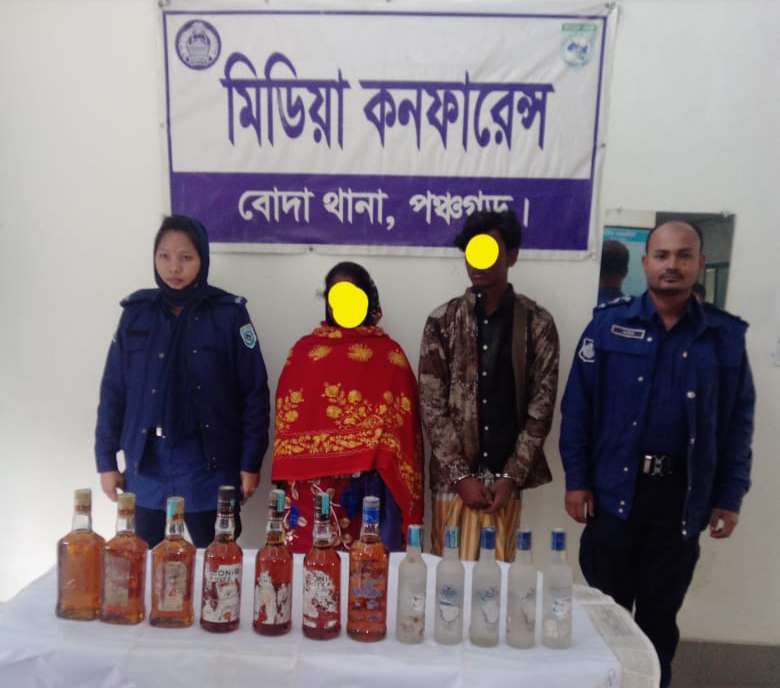 পুলিশ সূত্রে জানা যায়, গোপনসূত্রে খবর পেয়ে বোদা থানার ভারপ্রাপ্ত কর্মকর্তা ওসি মো. মোজাম্মেল হকের নির্দেশে বোদা থানার এসআই মোঃ আব্দুস সালাম, এসআই মোঃ আব্দুর রাজ্জাক, এএসআই সাজিদুর রহমান এর নেতৃত্বে সঙ্গী ফোর্সসহ বিশেষ অভিযান পরিচালনা করে বোদা ইউনিয়নের বালাভির ডাঙ্গাপাড়া গ্রামে ১২ বোতল বিদেশী মদসহ তাদের আটক করে। মোছাঃ বাছিরন নেছা বালাভির ডাঙ্গাপাড়া গ্রামের মো: ইসমাইল হোসেনের স্ত্রী ও মো: রাসেল ইসলাম একই গ্রামের মো: ইসমাইল হোসেনের ছেলে। তারা দীর্ঘদিন ধরে মাদক ব্যবসার সাথে জড়িত।