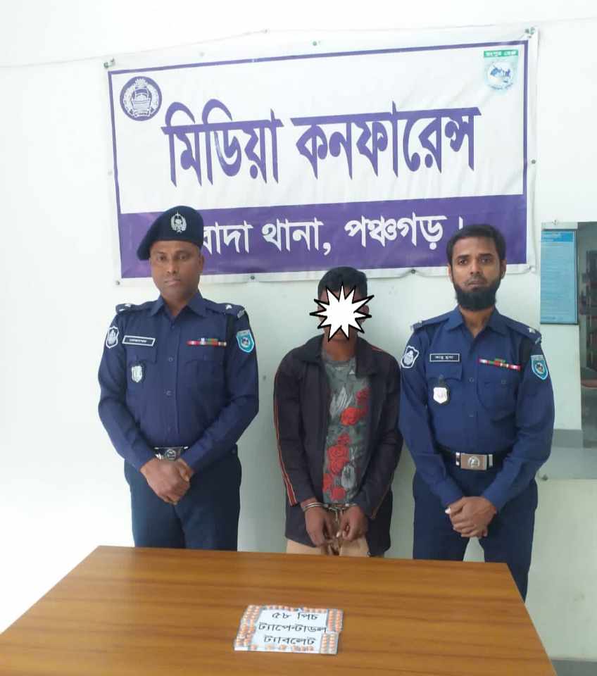 পঞ্চগড় জেলা পুলিশ সুপার এস এম সিরাজুল হুদা পিপিএম ও সহকারী পুলিশ সুপার দেবীগঞ্জ সার্কেল রুনা লায়লা দিকনির্দেশনায় বোদা থানার অফিসার ইনচার্জ মো. মোজাম্মেল হকের নির্দেশে বোদা থানার এসআই মোঃ আব্দুর রাজ্জাক, এসআই আব্দুস সালাম, এএসআই সাজদুর রহমান ও সঙ্গীয় ফোর্সের সমন্বয়ে গঠিত আভিযানিক দল বোদা বাসস্ট্যান্ডে বিশেষ অভিযান পরিচালনা কালে ৫৮ পিচ নেশা জাতীয় মাদক দ্রব্য ট্যাপেন্ডাডল ট্যাবলেট বিক্রির সময় তাকে হাতেনাতে আটক করে। সে দীর্ঘদিন ধরে পুলিশের চোখ ফাঁকি দিয়ে মাদকের ব্যবসায় করে আসছিল।