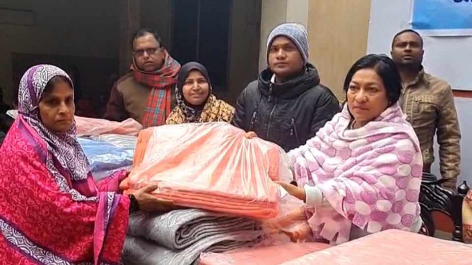 পঞ্চগড় পৌরসভা চত্বরে ৪ শতাধিক শিতার্তের মাঝে কম্বল বিতরণ করলেন পৌর মেয়র জাকিয়া খাতুন।