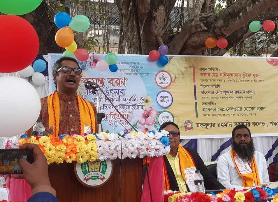 ১৪ ফেব্রুয়ারী (বুধবার) সকালে মকবুলার রহমান সরকারি কলেজ চত্বরে কলেজ অধ্যক্ষ প্রফেসর মো. দেলোয়ার হোসেন প্রধানের সভাপতিত্বে প্রধান অতিথি হিসেবে উপস্থিত ছিলেন পঞ্চগড়-১ আসনের সংসদ সদস্য মো. নাঈমুজ্জামান ভুইয়া মুক্তা।