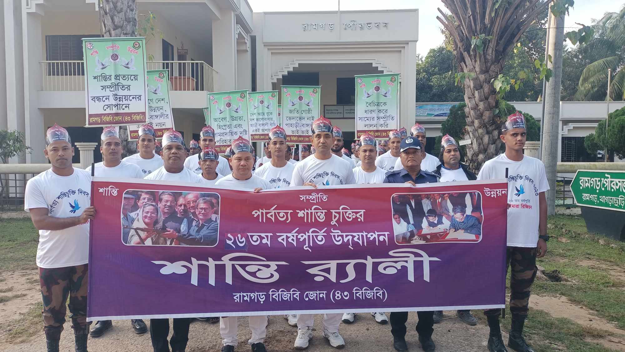 খাগড়াছড়ির রামগড় ব্যাটালিয়ন ৪৩ বিজিবি'র আয়োজনে পার্বত্য শান্তিচুক্তির ২৬ তম বর্ষপূর্তি উদযাপন উপলক্ষে একটি বর্ণাঢ্য শান্তি র্যালি,ফ্রি-মেডিকেল ক্যাম্প ও শীতবস্ত্র বিতরণ অনুষ্ঠিত হয়েছে।