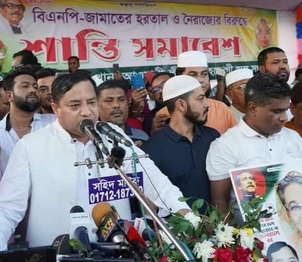 রবিবার ( ১৯ নভেম্বর) বিকেলে টঙ্গী চেরাগআলী ট্রাকস্ট্যান্ডে বিএনপি জামায়াতের হরতাল সন্ত্রাস নেরাজ্যৈর প্রতিবাদে, টঙ্গী পূর্ব-পশ্চিম থানা আওয়ামী লীগ আয়োজিত শান্তি সমাবেশে প্রধান অতিথির বক্তেব্যে তিনি এসব কথা বলেন।