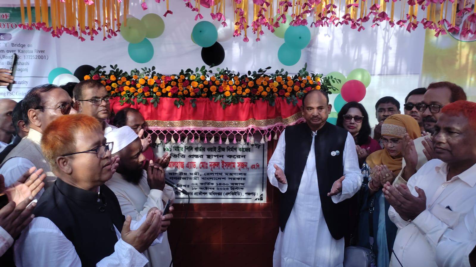 বুধবার (১৮ আগষ্ট) দুপুরে ১ শত ১৬ কোটি ৪৯ লক্ষ টাকা ব্যয়ে প্রায় এক কিলোমিটার দৈর্ঘ্য আউলিয়ার ঘাটে করতোয়া নদীর উপর ওয়াই ব্রিজের ভিত্তিপ্রস্তর স্থাপন করেন রেলপথ মন্ত্রী এড. নূরুল ইসলাম সুজন এমপি।