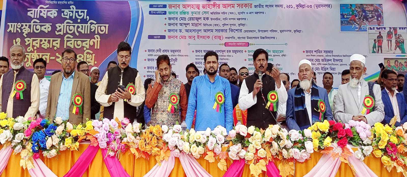 কুমিল্লার মুরাদনগর উপজেলায় বার্ষিক ক্রীড়া ও সংস্কৃতিক প্রতিযোগিতা ও পুরুষ্কার বিতরণী ২০২৪ অনুষ্ঠিত হয়েছে। মঙ্গলবার দুপুরে উপজেলার বাঙ্গরা বাজার থানার উমালোচন উচ্চ বিদ্যালয় মাঠে এই পুরুস্কার বিতরণ অনুষ্ঠিত হয়। এতে প্রধান অতিথির বক্তব্য রাখেন, মুরাদনগরের নবনির্বাচিত সংসদ সদস্য আলহাজ্ব জাহাঙ্গীর আলম সরকার। প্রধান অতিথির বক্তব্যে আলহাজ জাহাঙ্গীর আলম সরকার বলেন, লেখা পড়ার পাশাপাশি শিক্ষার্থীদের খেলাধুলায় মনোনিবেশ করতে হবে।