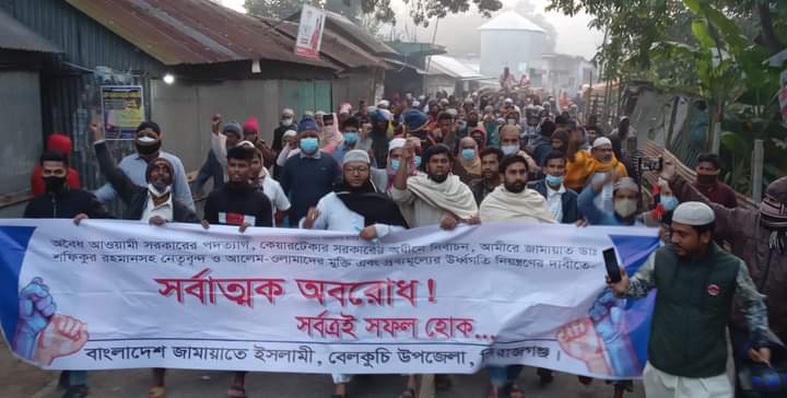 আজ বুধবার,সকালে,বাংলাদেশ জামায়াতে ইসলামী,বেলকুচি উপজেলা সেক্রেটারি আরিফুল ইসলাম সোহেল এর নেতৃত্বে অনুষ্ঠিত অবরোধ কর্মসূচীতে এ সময় আরও উপস্থিত ছিলেন,জামায়াত নেতা ছানাউল্লাহ,হাসমত আলী,মঞ্জুরুল আলম,