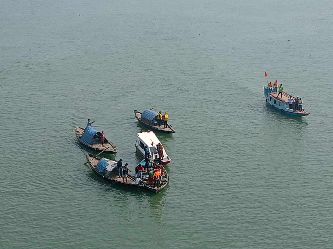 শনিবার সকাল ৮টার দিকে ফায়ার সার্ভিসের চার জন ডুবুরি উদ্ধার অভিযান শুরু করলেও সকাল ১০টা পর্যন্ত নিখোঁজ আট জনের সন্ধান মেলেনি।