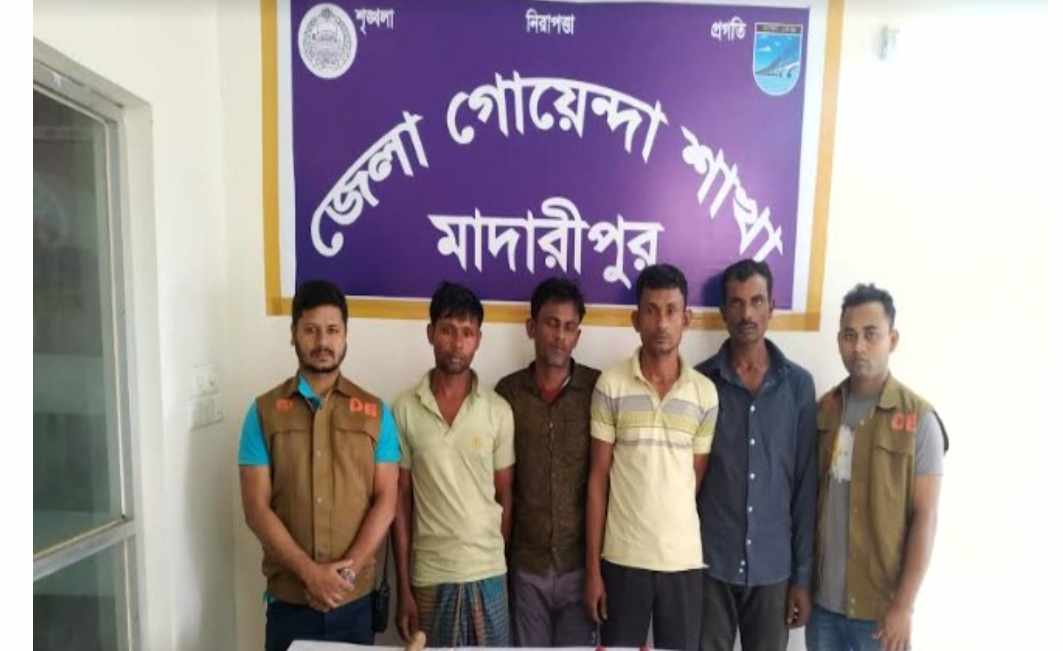 গোয়েন্দা শাখার পুলিশের সুত্রে জানা যায়, মাদারীপুর জেলা গোয়েন্দা শাখা এসআই রায়হান সিদ্দিকী শামীমের নেতৃত্বে অবৈধ মাদক, অস্ত্র ও নাশকতা প্রতিরোধে বিশেষ অভিযান পরিচালনাকালে এর নেতৃত্বে গোপন সংবাদের ভিত্তিতে জানতে পারে সদর উপজেলার ঘটকচর এলাকায় আব্দুর রব হাওলাদারের বাগানে ডাকাতির প্রস্তুতি নিচ্ছিল ডাকাতদলের সদস্যরা। তখন তাদের সন্দেহ হলে পুলিশ ডাকাতদলের সদস্যদের ঘিরে ফেলে আটক করা হয়। ঘটনাস্থল থেকে তল্লাশি করে এসময় তাদের কাছে থেকে ১টি লোহার কাঠার, একটি স্লাই রেঞ্জ, একটি রাম দা, একটি ছ্যান দা।
