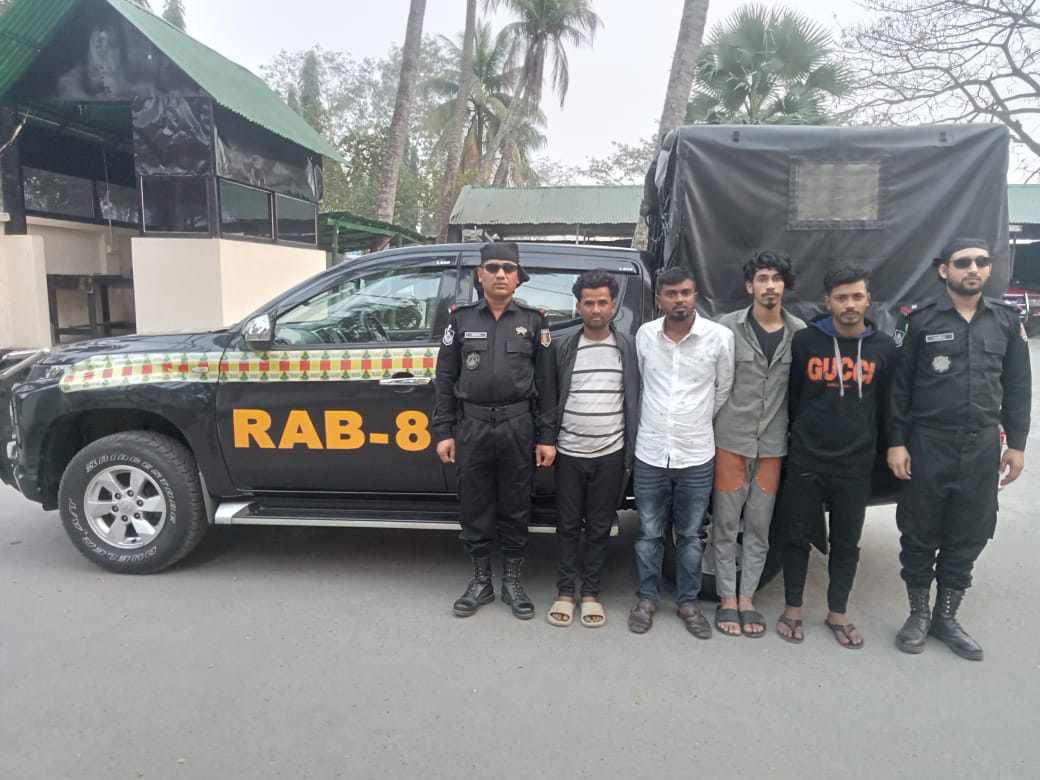 ২। এরই ধারাবাহিকতায় র্যাব-৮,সিপিসি-৩, মাদারীপুর ক্যাম্পের একটি বিশেষ আভিযানিক দল গোয়েন্দা তথ্যের ভিত্তিতে ২০/২/২০২৪ ইং তারিখ ০৪০০ ঘটিকায় কুনিয়া, থানা-সদর, জেলা-মাদারীপুর এলাকা হতে মাদক ব্যবসায়ী টুরিস্ট সেজে কক্সবাজার মাইক্রোযোগে ভ্রমন শেষে ফেরার পথে ১। শামীম আকন, পিতা-মৃত আব্দুল খালেক আকন, ২। হৃদয় হাসান (২০), পিতা-জালাল মোল্লা, ৩। সানজিদ ফরাজি (১৯), পিতা-সরোয়ার ফরাজি, উভয়ের ঠিকানা গ্রাম-কুনিয়া, থানা-সদর, জেলা-মাদারীপুর ৪। মোছাঃ রুমী আক্তার (২২), পিতা-মোঃ জালাল শেখ, গ্রাম-আমবাগ কুঠিবাড়ি, মুক্তারকান্দি গুচ্ছগ্রাম, থানা- রাজৈর, জেলা-মাদারীপুর, ৫। মোছাঃ তানিয়া ইসলাম (২৩), পিতা-বাদল শরীফ, গ্রাম-আলম দস্তা ব্রীজ, থানা-রাজৈর, জেলা-মাদারীপুর, ৬। নাসির ফকির (৩০), পিতা-সিরাজ ফকির, গ্রাম-চরপুঠিয়া, থানা-সদর, জেলা-মাদারীপুরদ্বয়কে আটক করে।