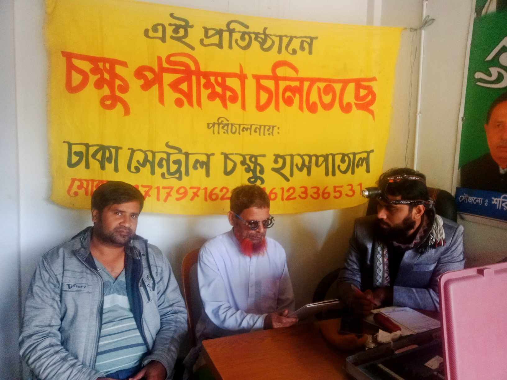 চিকিৎসা সেবা প্রদান অনুষ্ঠানে রোগীদের চিকিৎসা করেন ঢাকা যাত্রাবাড়ী ৪০/২ শহীদ ফারুক রোডে সামিউল্লাহ প্লাজায় অবস্থিত ঢাকা সেন্ট্রাল চক্ষু হাসপাতাল উপ-সহ কমিউনিটি মেডিকেল অফিসার ও সিনিয়র অপ্টোমেট্রিস্ট সম্রাট আহম্মেদ,কাউন্সিলর মো: হাসান,সহকারী আপন।