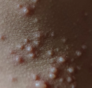 আজমেরি (৪–ছদ্মনাম) রাজধানীর পান্থপথের একটি স্কুলে প্লে গ্রুপে পড়ে। সপ্তাহখানেক আগে স্কুল থেকে ফেরার পরপরই ওর হাতে কিছু ফোসকার মতো দেখতে পান মা। ধীরে ধীরে বাড়তে থাকে এসব গুঁড়ি গুঁড়ি ফোসকা। হাত থেকে পায়ে, হাঁটুতে ছড়িয়ে পড়ে এক দিনের মধ্যেই। এরপর সঙ্গে ছিল হালকা জ্বর।