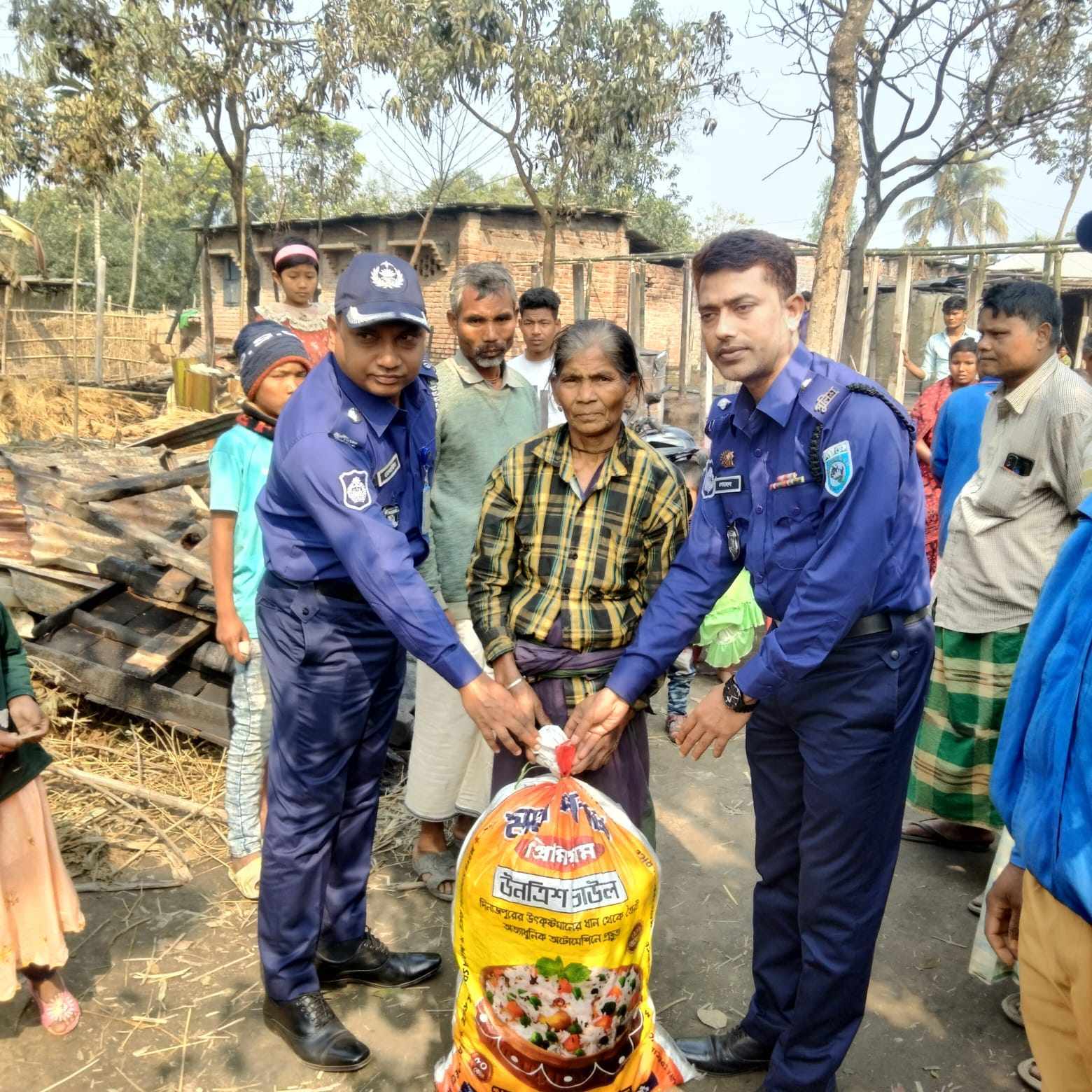 ঠাকুরগাঁওয়ের রানীশংকৈল উপজেলার ৫নং বাচোর ইউনিয়নের চোপড়া গ্রামে ৪ ফেব্রুয়ারি (রবিবার) বিকালে অগ্নিকাণ্ডে ক্ষতিগ্রস্ত দুটি পরিবারকে সহায়তা করেন পুলিশ সুপার | অগ্নিকান্ডে ক্ষতিগ্রস্থ পরিবারের মাঝে কম্বল , শাড়ি, লুঙ্গি, চাল,ডাল,চিরা,মুড়ি,তৈল,আলু ,পিয়াজ, সহায়তা প্রদান করেন। সহায়তা প্রদানের সময় ক্ষতিগ্রস্ত পরিবারের মাঝে সহায়তা তুলে দেন , ,অতিরিক্ত পুলিশ সুপার রাণীশংকৈল সার্কেল মোঃ রেজাউল হক , রাণীশংকৈল থানা অফিসার ইনচার্জ সুয়েল রানা ও স্থানীয় সাধারণ জনগণ ।