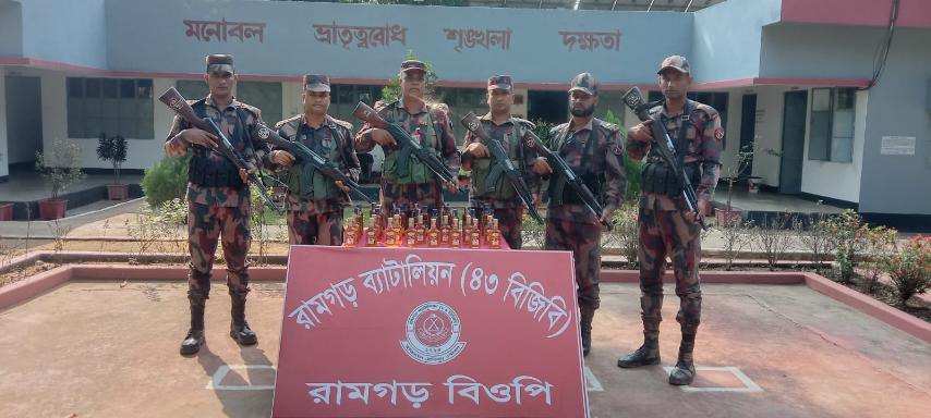 জানা যায়, গোপন সংবাদের ভিত্তিতে মর্টারটিলা এলাকায় অভিযান চালায় রামগড় ৪৩ বিজিবি। এসময় বিজিবির উপস্থিতি টের পেয়ে মালামাল রেখে চোরাকারবারীরা পালিয়ে যায়। এরপর মালিকবিহীন ৩৫ বোতল মদ জব্দ করা হয়, যার বাজার মুল্য ৫২ হাজার ৫শত টাকা। মদ ধ্বংস করার জন্য ব্যাটালিয়ন সদর দপ্তরে জমা রাখা হয়েছে।