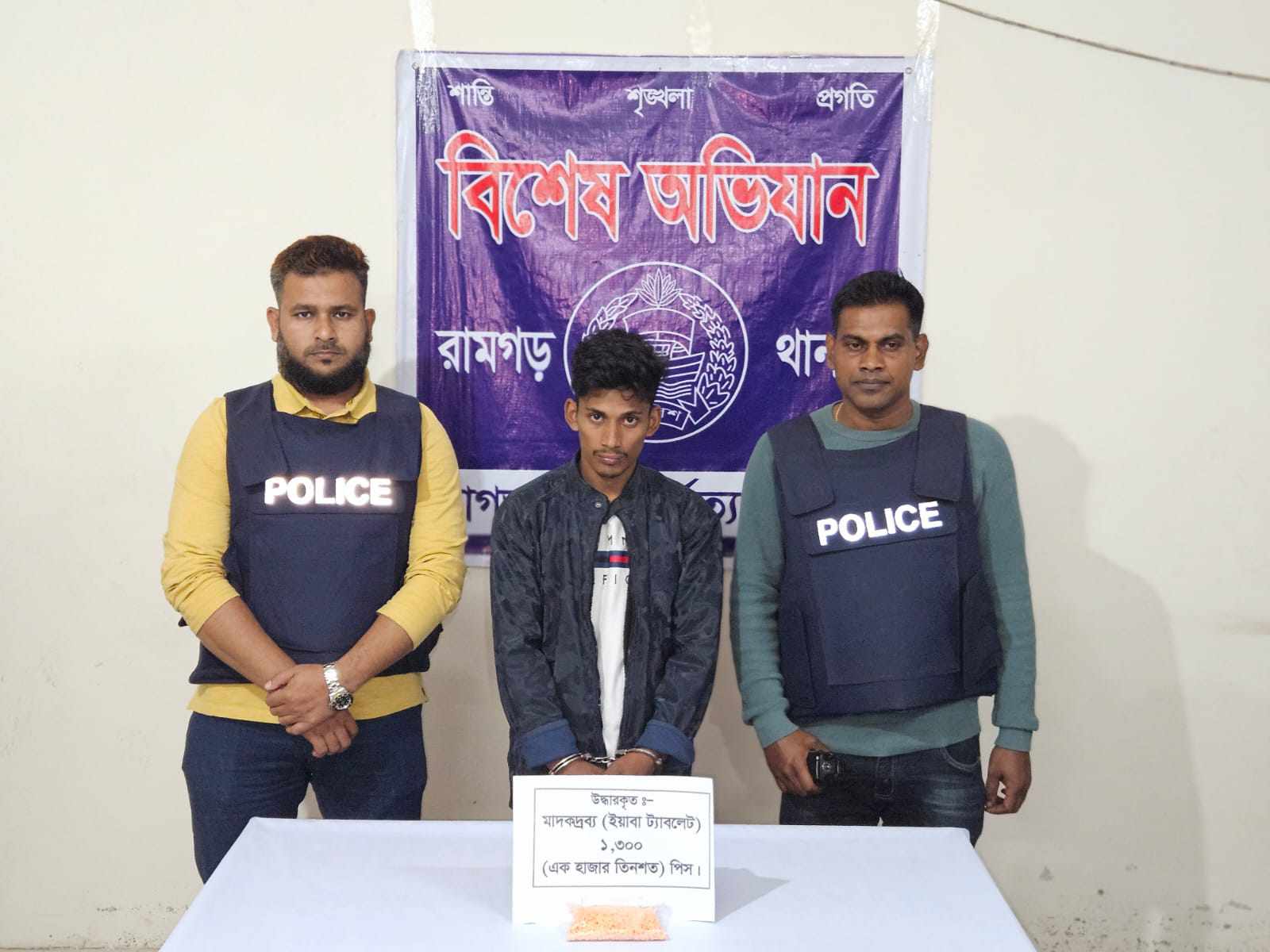 রামগড় থানার এসআই মহসিন মস্তোফা সূত্রে জানা গেছে, গোপন সংবাদের ভিত্তিতে অভিযান পরিচালনা করে সন্ধ্যা রাত ৬ টায় মো.আফছার কে ১৩০০ পিস ইয়াবা ট্যাবলেট সহ আটক করা হয়।