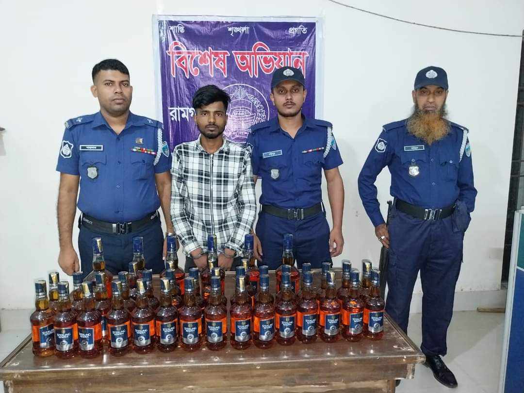 রামগড় থানার এসআই মহসিন মস্তোফা সূত্রে জানা গেছে, গোপন সংবাদের ভিত্তিতে অভিযান পরিচালনা করে গতকাল রাত ১১টা ৪০ মিনিটে একরামুল হক কে ৪০ বোতল ভারতীয় মদ সহ আটক করা হয়।