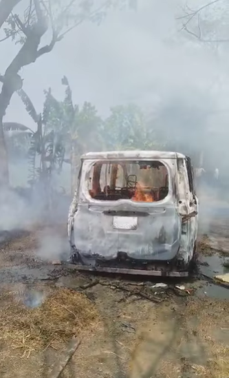 উপস্থিত প্রত্যক্ষদর্শী জানান, রাস্তার উপরে শুকনা কলাই গাছ বা কাকচা মাইক্রোবাসের সাইলেন্সরে পেচিয়ে প্রথমে ধোয়ার কুন্ডলি ও পরবর্তীতে ভয়াবহ অগ্নিকাণ্ডের সৃষ্টি হয়। স্থানিয়রা গাড়িতে থাকা লোকদের দরজা ভেঙ্গে বের করতে পারলেও আগুন নিয়ন্ত্রনে আনতে ব্যার্থ হয়ে উপজেলার ফায়ার সার্ভিস ইউনিটকে মুঠোফোনে সংবাদ দেয় ।পরবর্তীতে ফায়ার সার্ভিসের দুইটি ইউনিট ও এলাকাবাসীর যৌথ প্রচেষ্টায় আগুন নিয়ন্ত্রণে আনতে সক্ষম হন।