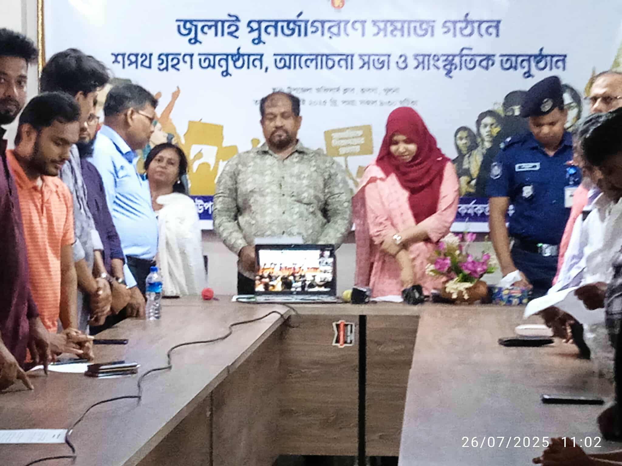 আঃ মান্নান (রূপসা প্রতিনিধি) : রূপসায় আজ ২৬-শে জুলাই শনিবার সকাল ১০ টায় উপজেলা অফির্সাস ক্লাবে উপজেলা প্রশাসন,সমাজ সেবা ও মহিলা বিষয়ক কার্যালয়ের আয়োজনে জুলাই শপথ অনুষ্ঠান অনুষ্ঠিত হয়।