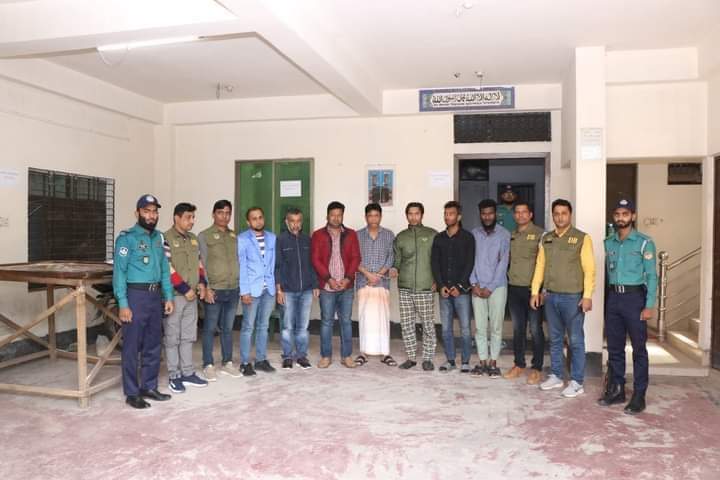গ্রেফতার ব্যক্তিরা হলেন– গাজীপুর জেলা শহরের রাজাবাড়ী (উত্তরপাড়া) এলাকার মৃত বিল্লাল হোসেন ভূঁইয়ার ছেলে গাজীপুর সিটি করপোরেশনের ২৮নং ওয়ার্ডের কাউন্সিলর হাসান আজমল ভূঁইয়া (৫০), ভানোয়া এলাকার তারিকুল ইসলাম দিপুর ছেলে জুলকার নাইন আশরাফি হৃদয় (৩৫), উত্তর ছায়াবিথী এলাকার মৃত সোলায়মান মোড়লের ছেলে শাহানুর আলম (৫৩), কানাইয়া পূর্বপাড়া এলাকার মৃত ওমেদ আলী মোল্লার ছেলে সাইদুল ইসলাম (৩২), মধ্য ছায়াবিথী এলাকার আফতাফ উদ্দিনের ছেলে সোহেল রানা (৩৮); নেত্রকোনার মদন উপজেলার বারই বাজার গ্রামের রফিকুল ইসলামের ছেলে জান্নাতুল ইসলাম (২৩), ময়মনসিংহের ভালুকা উপজেলার বান্দীয়া গ্রামের তাইজুদ্দিনের ছেলে মেহেদী হাসান (২৫)।