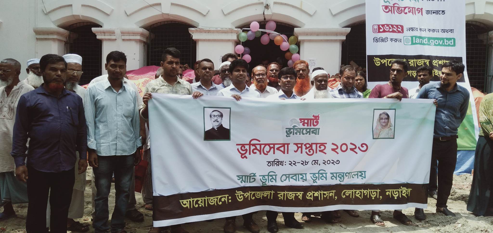 স্মার্ট ভূমি সেবায় ভূমি মন্ত্রণালয়’ এ প্রতিপাদ্যকে সামনে নিয়ে নড়াইলের লোহাগড়ায় ভূমি সেবা সপ্তাহ-২০২৩ (২২-২৮ মে ) এর উদ্বোধন অনুষ্ঠিত হয়েছে।