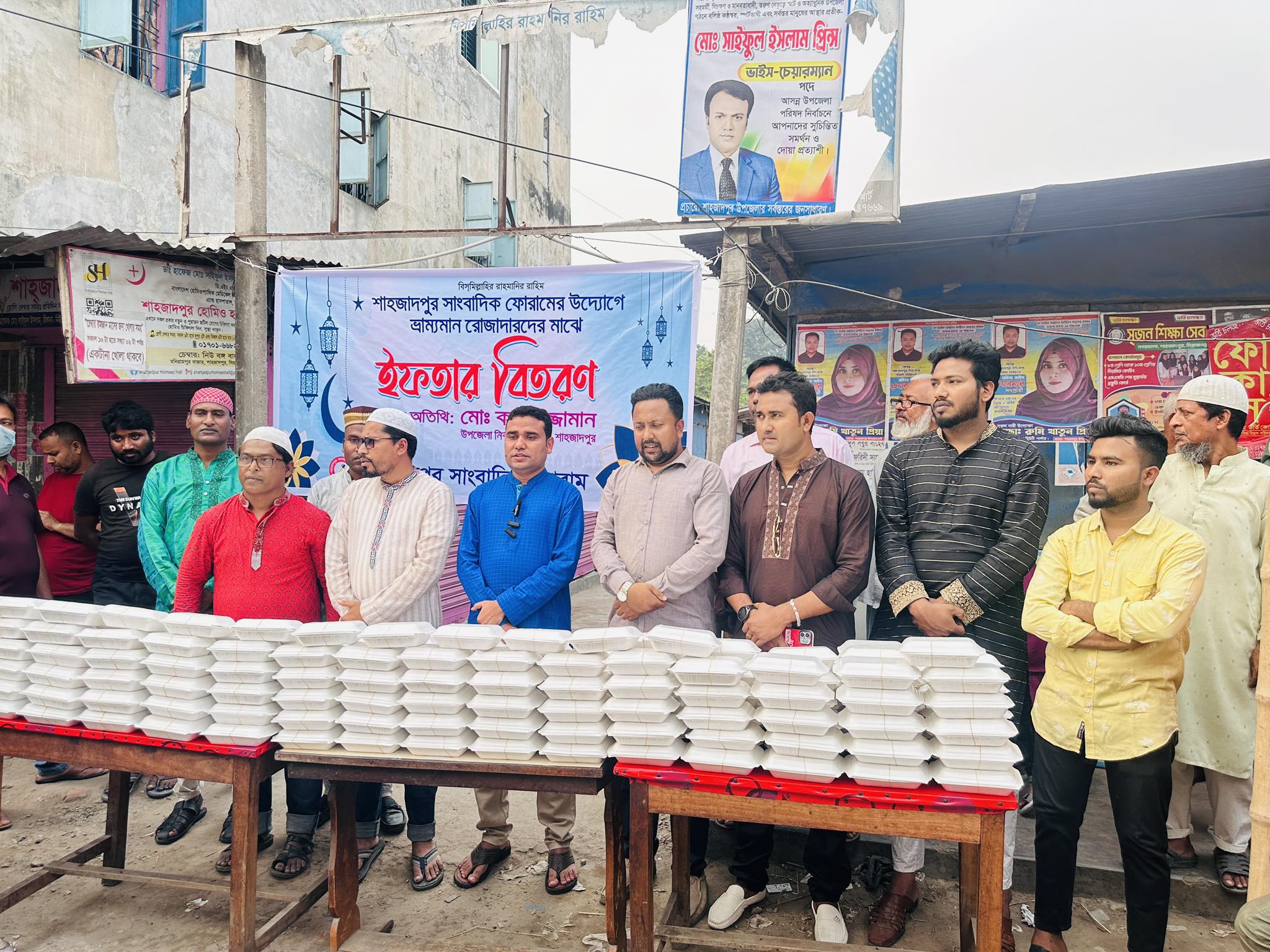 সিরাজগঞ্জের শাহজাদপুরে পথচারী ৪শতাধিক রোজাদারের মাঝে ইফতার বিতরণ করেছে শাহজাদপুর সাংবাদিক ফোরাম।