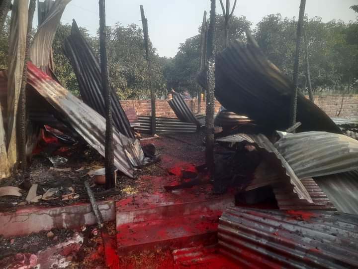 রাত ১২টায় হঠাৎ একটি ঘরে আগুন দেখতে পেয়ে প্রতিবেশীরা আগুন নেভানোর চেষ্টা করে। পরে মুহূর্তেই আগুন পাশের তিনটি কক্ষে ছড়িয়ে পড়ে।