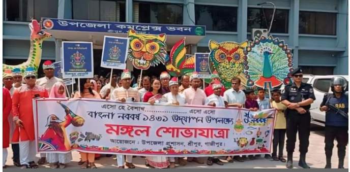 শ্রীপুরে প্রশাসনের আয়োজনে বাংলা নববর্ষ পালিত। বাংলা নতুন বছরের প্রথম দিন পহেলা বৈশাখকে বরণ করে নেয়া হয়েছে। আবহমান বাংলার ঐতিহ্যের এ উৎসবকে বরণে নানা কর্মসূচী পালন করে শ্রীপুর উপজেলা প্রশাসন। বাঙালিয়ানা পোশাক পরিধান, মঙ্গল শোভাযাত্রা ও মনোজ্ঞ সাংস্কৃতিক অনুষ্ঠানের মধ্য দিয়ে উৎসবটি সার্বজনীন করে উদযাপন করছে উপজেলা প্রশাসন।