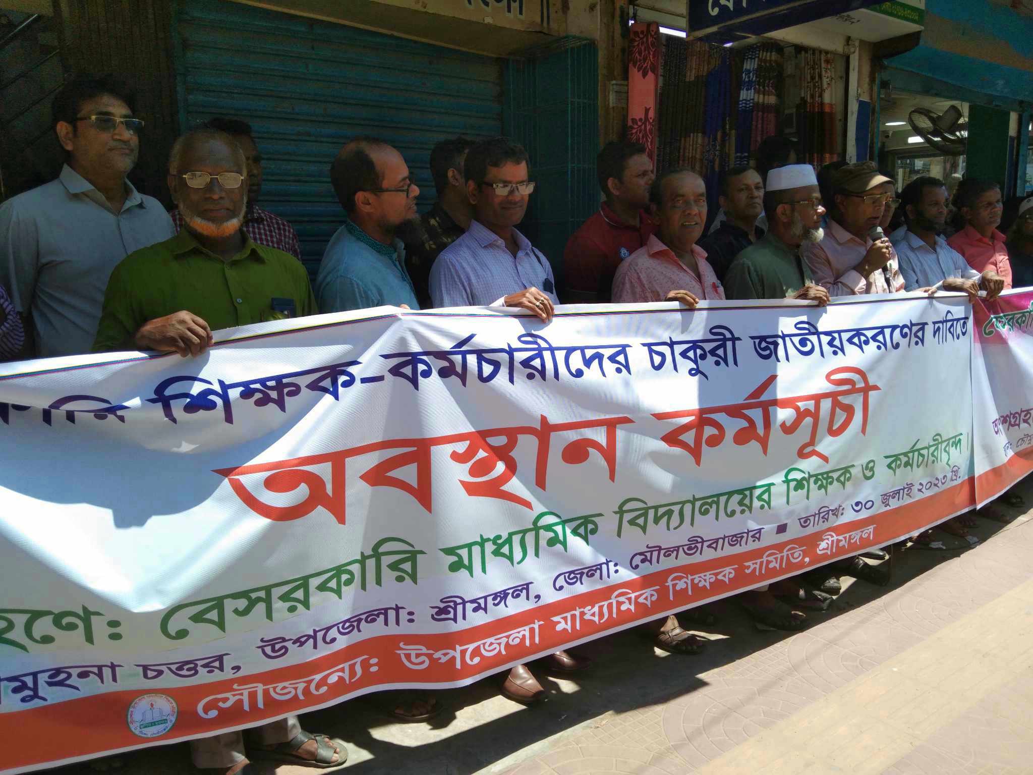 শ্রীমঙ্গলে শিক্ষক কর্মচারীর চাকুরী জাতীয়করণের দাবিতে অবস্থান কর্মসূচি।চালিয়ে যাচ্ছেন শিক্ষকেরা।