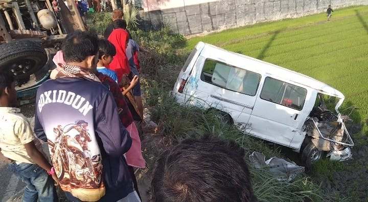সিরাজগঞ্জে চালবোঝাই ট্রাকের সঙ্গে পুলিশবাহী মাইক্রোবাসের মুখোমুখি সংঘর্ষে পুলিশসহ পাঁচজন আহত হয় । মঙ্গলবার (১৯ ডিসেম্বর) বিকেলে সিরাজগঞ্জ-কড্ডা আঞ্চলিক সড়কের বারাকান্দি এলাকায় এ সংঘর্ষের ঘটনা ঘটে। পুলিশ ও প্রত্যক্ষদর্শীরা জানান, সিরাজগঞ্জ শহর থেকে কড্ডামুখী ব্যাংকের টাকা বহনকারী একটি মাইক্রোবাস বারাকান্দি পৌঁছালে শহরগামী সরকারি চালবোঝাই একটি ট্রাকের মুখোমুখি সংঘর্ষ হয়। এতে ট্রাকটি সড়কের ওপর উল্টে যায়। মাইক্রোবাসটি ছিটকে সড়কের পাশে চলে যায়। পরে মাইক্রোবাসে থাকা আহতদের উদ্ধার করে পুলিশে খবর দেওয়া হয়। আহতদের সিরাজগঞ্জ ২৫০ শয্যা বঙ্গমাতা শেখ ফজিলাতুন্নেছা মুজিব জেনারেল হাসপাতালে পাঠানো হয়েছে। এ ঘটনায় ওই সড়কে বেশ কিছুক্ষণ সব ধরনের যানচলাচল বন্ধ হয়ে যায়। পরে পুলিশ ট্রাক ও মাইক্রোবাসটি উদ্ধার করে থানায় নিয়ে যায়। বিষয়টি নিশ্চিত করে সিরাজগঞ্জ সদর থানার ভারপ্রাপ্ত কর্মকর্তা (ওসি) সিরাজুল ইসলাম জানান – আহতদের মধ্যে একজন পুলিশ সদস্য রয়েছেন। বর্তমানে সড়কে যানচলাচল স্বাভাবিক রয়েছে।