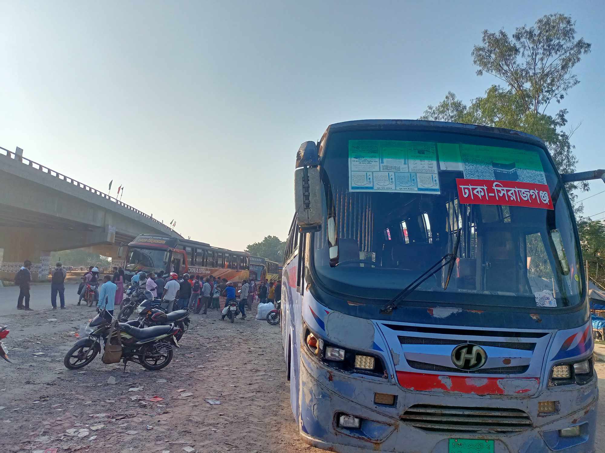 সিরাজগঞ্জ শহর থেকে ঢাকার উদ্দেশ্যে বের হওয়া আমজাদ হোসাইন বলেন, বাস না চলায় ভোরেই সিরাজগঞ্জ এক্সপ্রেস ট্রেনের টিকিট কেটে ঢাকা রওনা হয়েছি। টিকিট কাটলেও সিট না পেয়ে দাঁড়িয়ে যাচ্ছি।